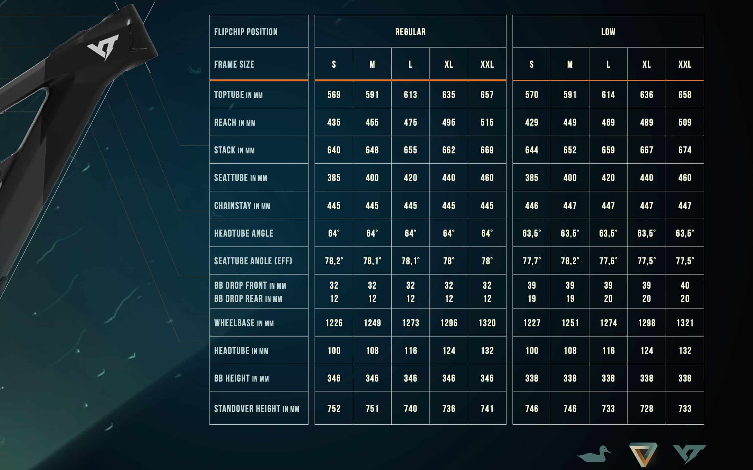 Côté géométrie, c’est du sérieux : le reach s’allonge considérablement (+ 26 mm), l’angle de tube de selle se redresse (78°), l’angle de direction passe à 63,5° et le boitier de pédalier est abaissé.