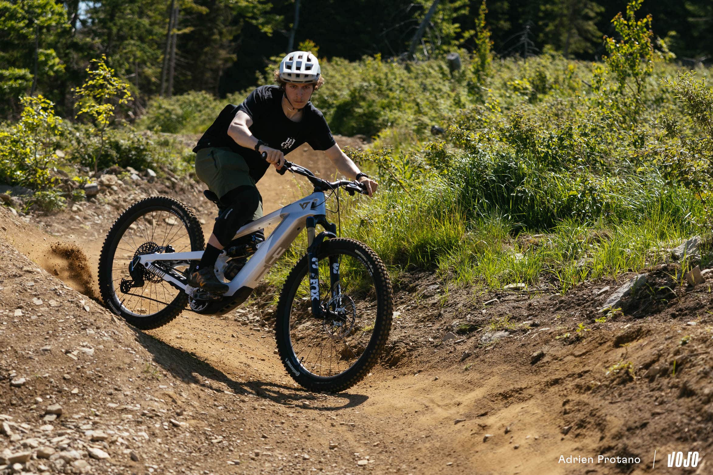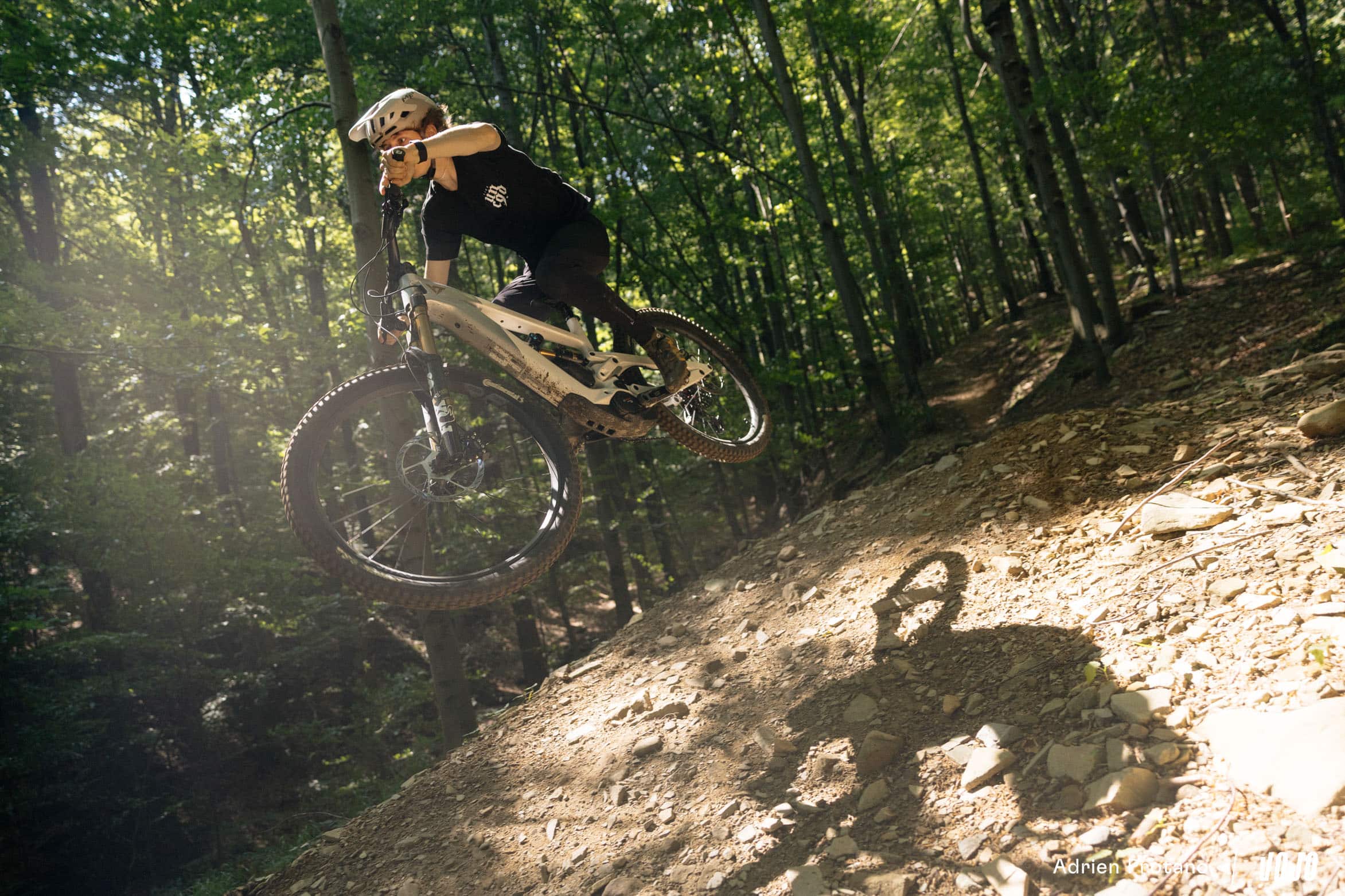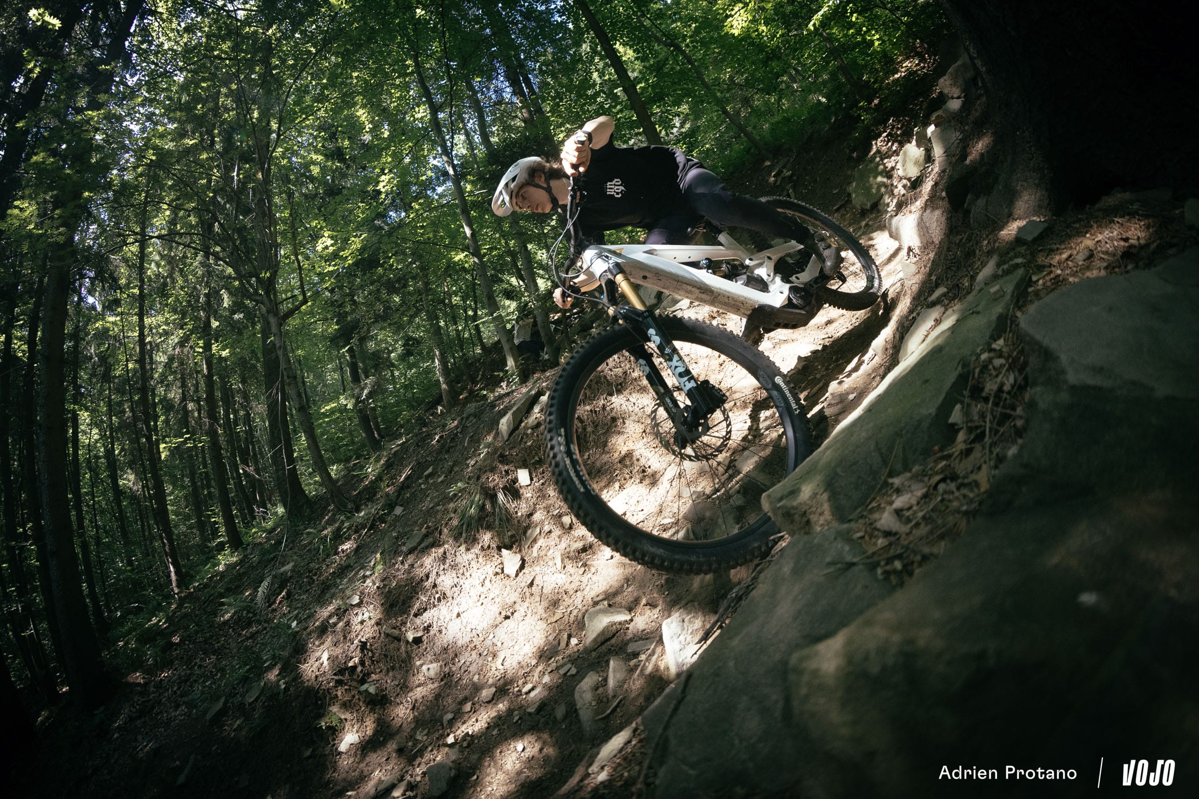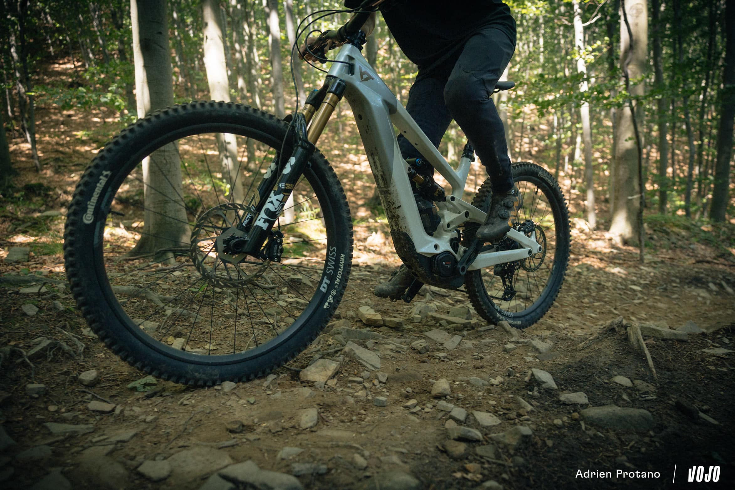 Ce caractère est sans doute directement influencé par la taille de notre vélo de test. Pour notre mètre 77, c’est sur une taille L que nous avons effectué ces deux sorties, avec un reach de 475 mm, soit la limite haute pour notre gabarit. Si vous êtes à la recherche d’un vélo plus joueur ou maniable dans les sections plus lentes ou tortueuses, envisager une taille inférieure peut être une option.
