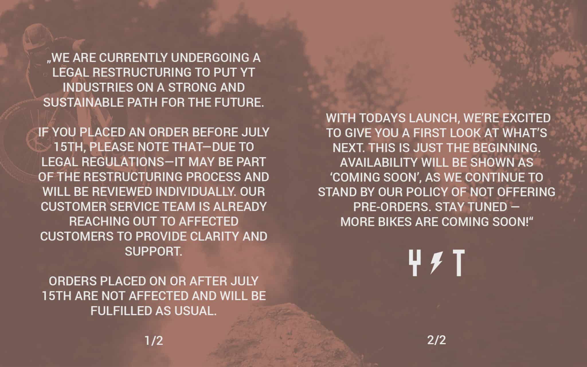Vous avez peut-être vu passer l’information ces derniers jours, le lancement de ce nouveau Decoy se fait dans une situation un peu particulière pour la marque : YT a lancé un processus de restructuration juridique en vertu du droit allemand, entrant en auto-administration pour assurer l’avenir de l’entreprise. Pour simplifier, cela signifie que l’entreprise reconnaît traverser une crise financière et est encadrée par le tribunal pour éviter la faillite.