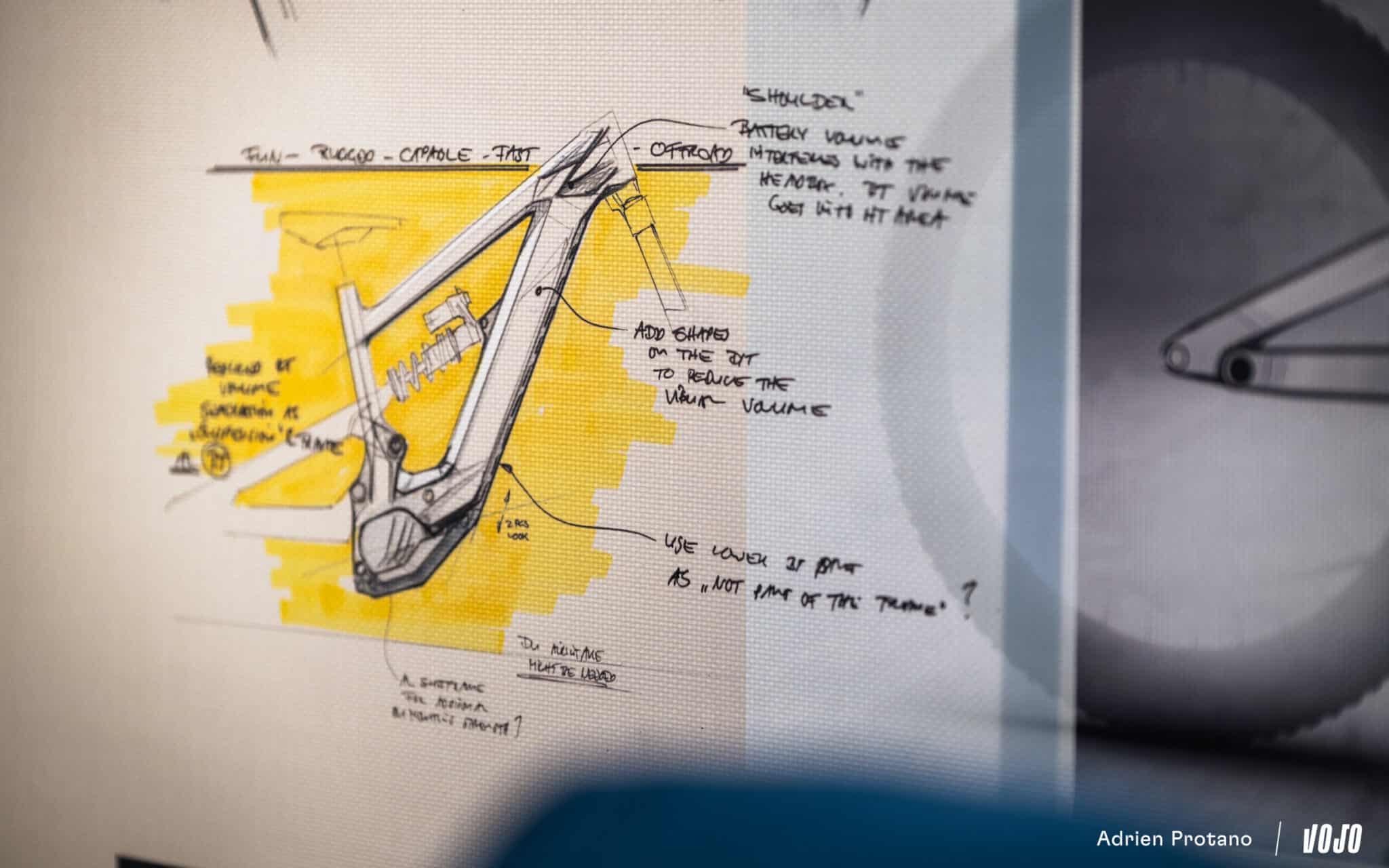 « On veut que nos modèles électriques ressemblent à des vélos sans assistance », introduit Frank. « On est passé par beaucoup… vraiment beaucoup d’itérations esthétiques pour intégrer au mieux l’assistance. On peut aussi apercevoir qu’on a testé d’autres moteurs durant le processus, notamment celui de chez Sram », ajoute-t-il.