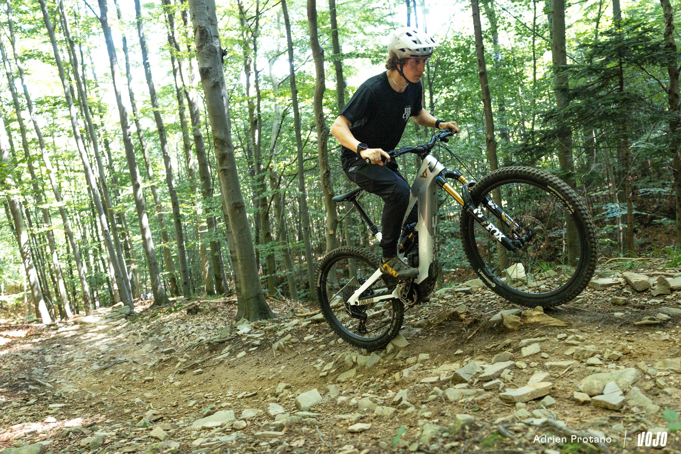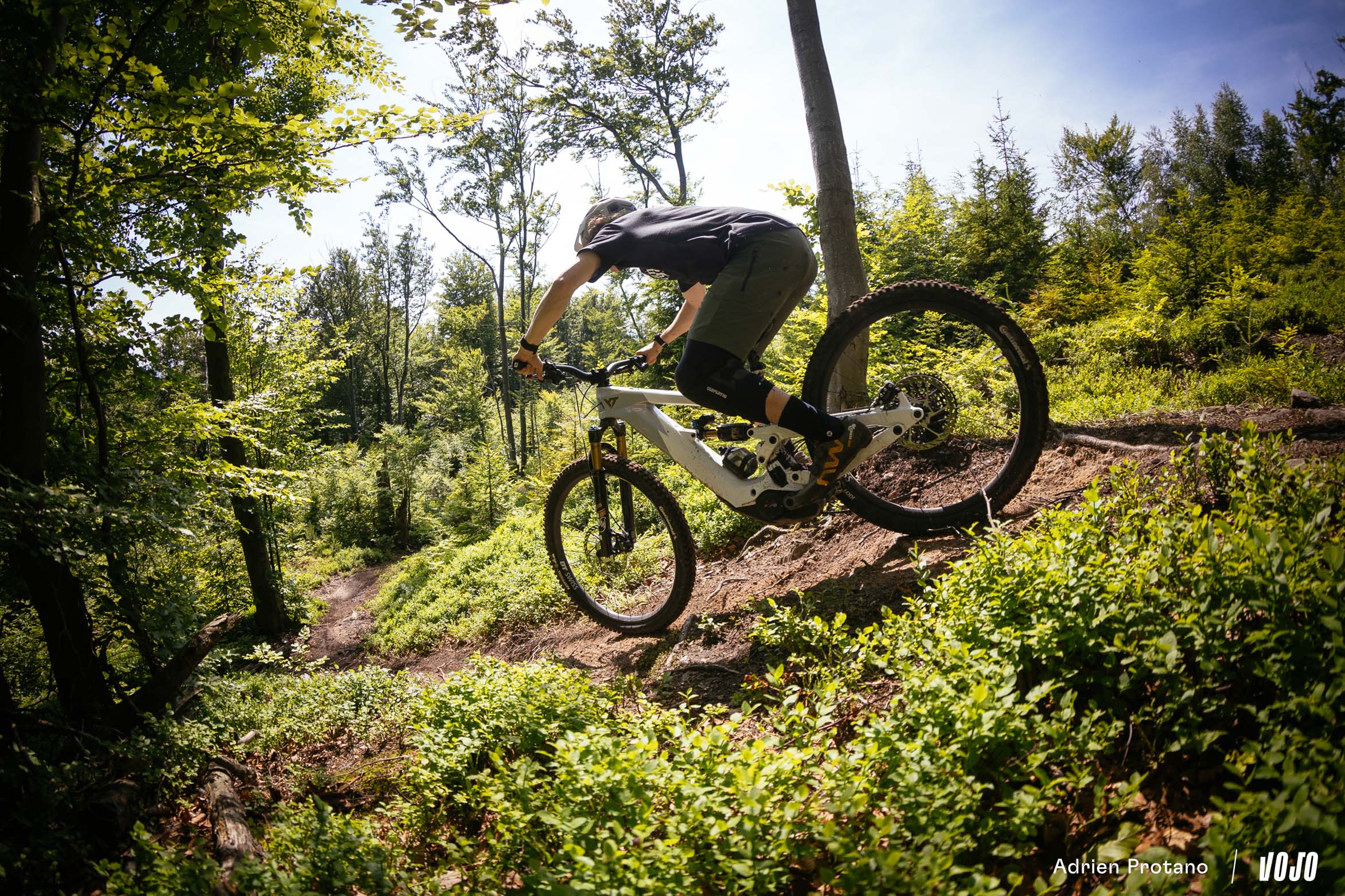 Ce caractère est sans doute directement influencé par la taille de notre vélo de test. Pour notre mètre 77, c’est sur une taille L que nous avons effectué ces deux sorties, avec un reach de 475 mm, soit la limite haute pour notre gabarit. Si vous êtes à la recherche d’un vélo plus joueur ou maniable dans les sections plus lentes ou tortueuses, envisager une taille inférieure peut être une option.