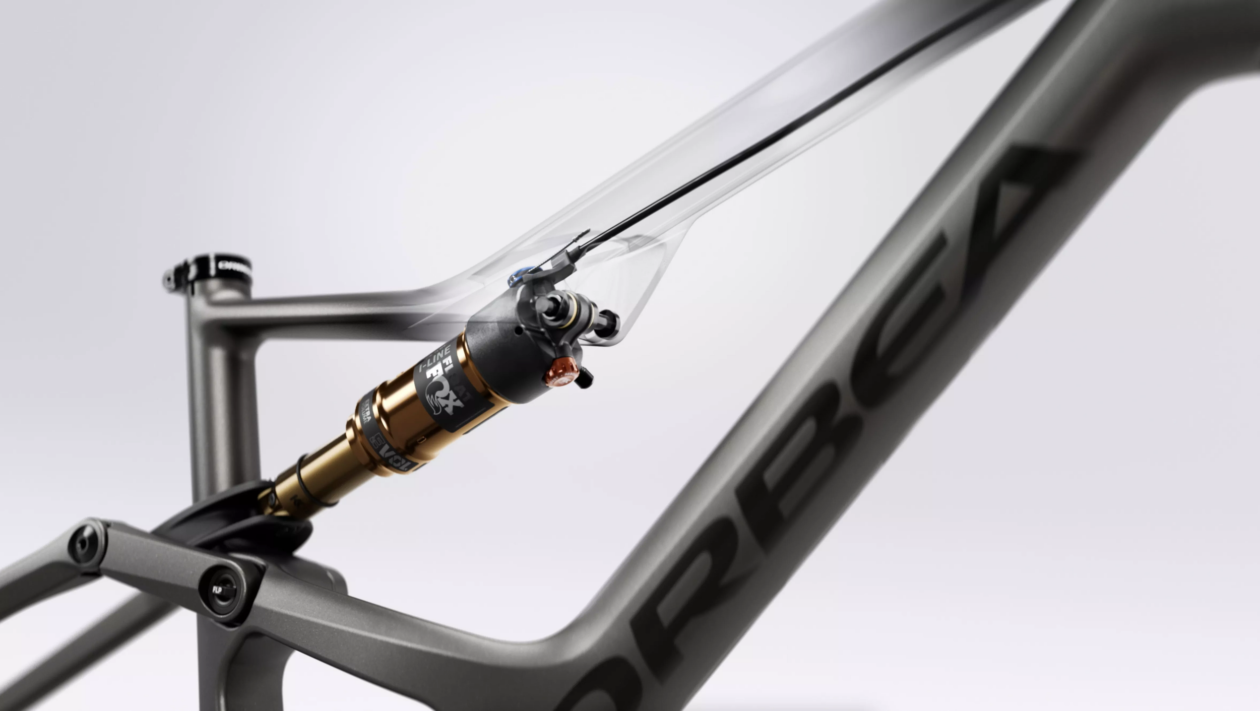 Comme sur le Oiz de la marque, Orbea a fait le choix de masquer complètement le câble de blocage de l’amortisseur en le faisant passer dans le tube supérieur.