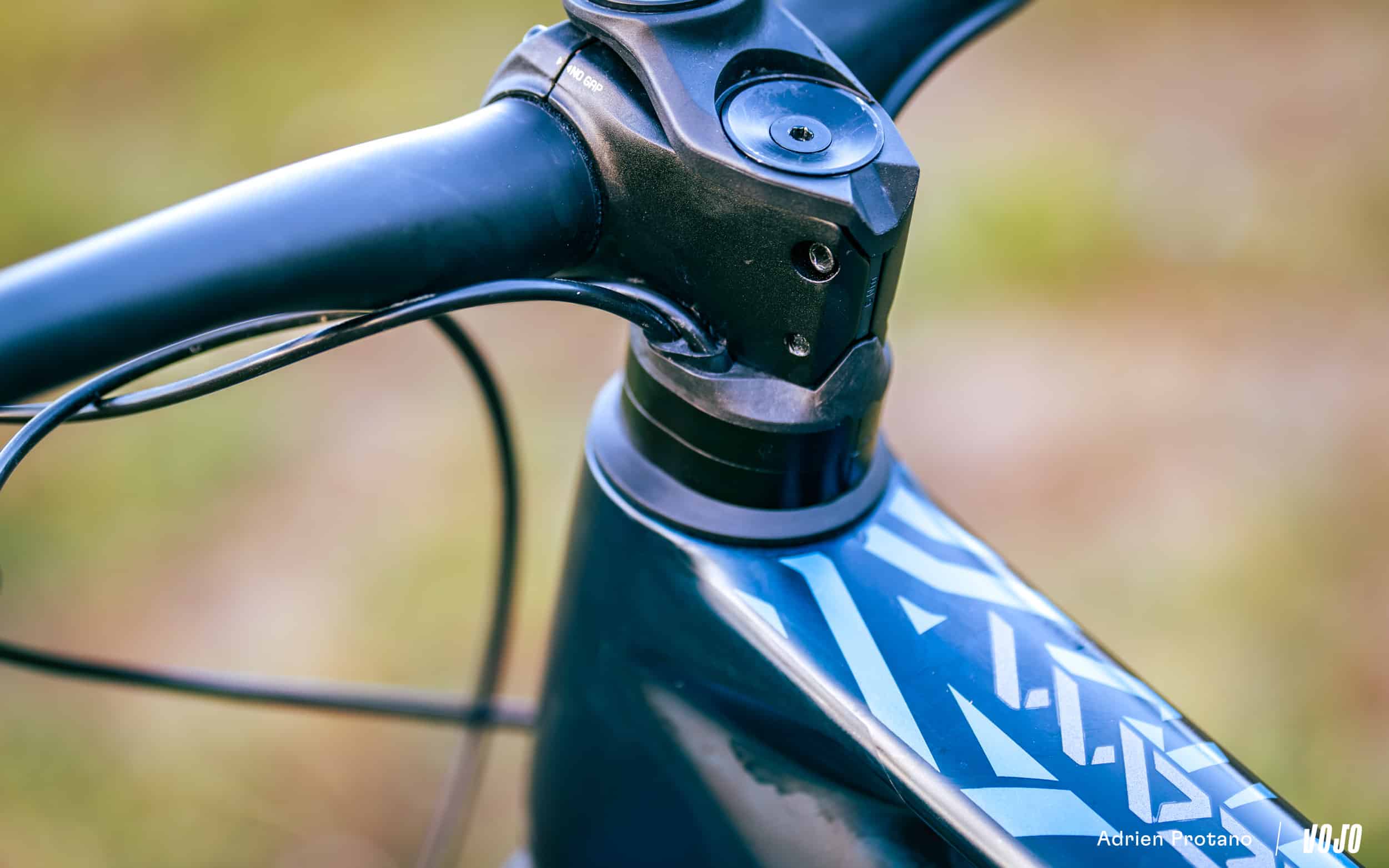 Car oui, l’Orbea Occam LT est doté d’un ingénieux flip-chip, au contraire de la version SL, qui permet d’osciller entre deux positions : une position haute « de série » ainsi qu’une position basse permettant de faire varier de 0,5° l’angle de direction (64°) ainsi que le tube de selle (77,5°). Le reach est également impacté et perd 5 mm en position basse.