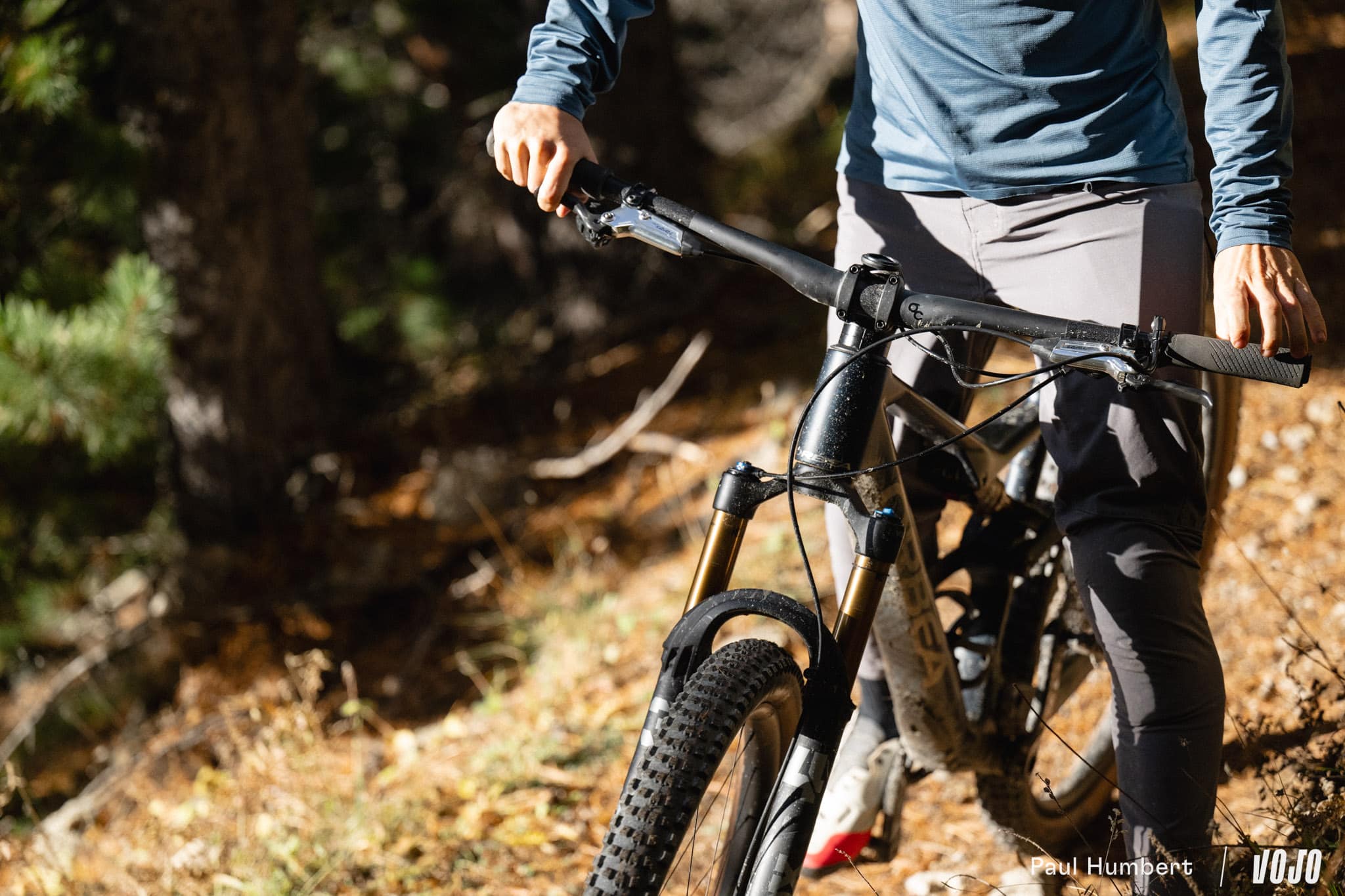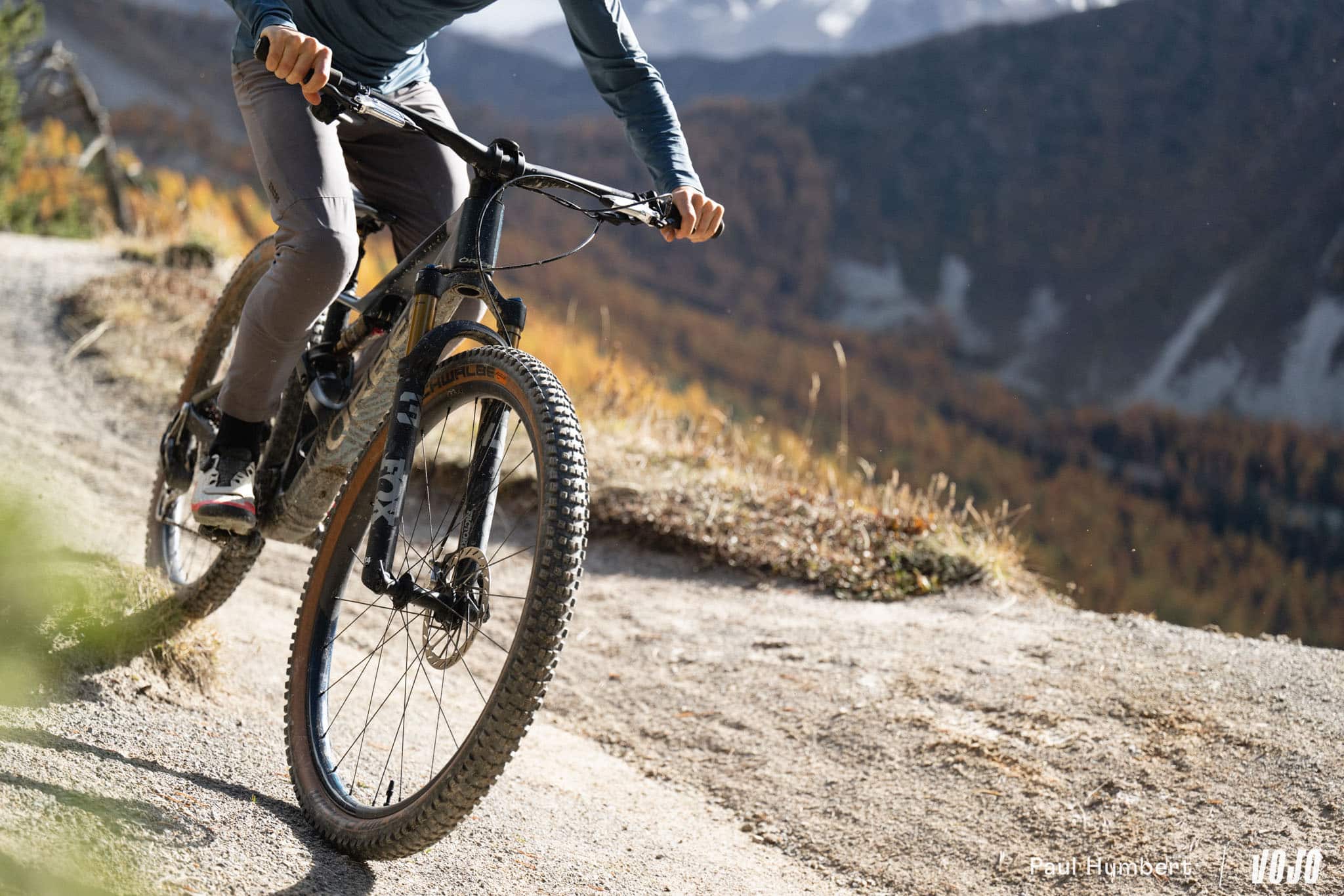 Lors des longues descentes du Queyras, on s’est rendu compte d’une petite faiblesse au niveau du choix des freins. Les Sram Level Ultimate de notre modèle d’essai ont eu tendance à surchauffer dans la pente. Sans surprise, on a trouvé que les pneus Schwalbe Wicked Will avaient tendance à fort limiter le châssis. On conseillera des pneus un cran supérieur en termes de carcasse et de crampons pour libérer tout le potentiel de ce modèle, surtout pour des terrains accidentés et/ou à la montagne. Par contre, pour les personnes à la recherche d’un châssis très roulant et se rapprochant davantage d’un cross-country, les pneumatiques de série feront sens.