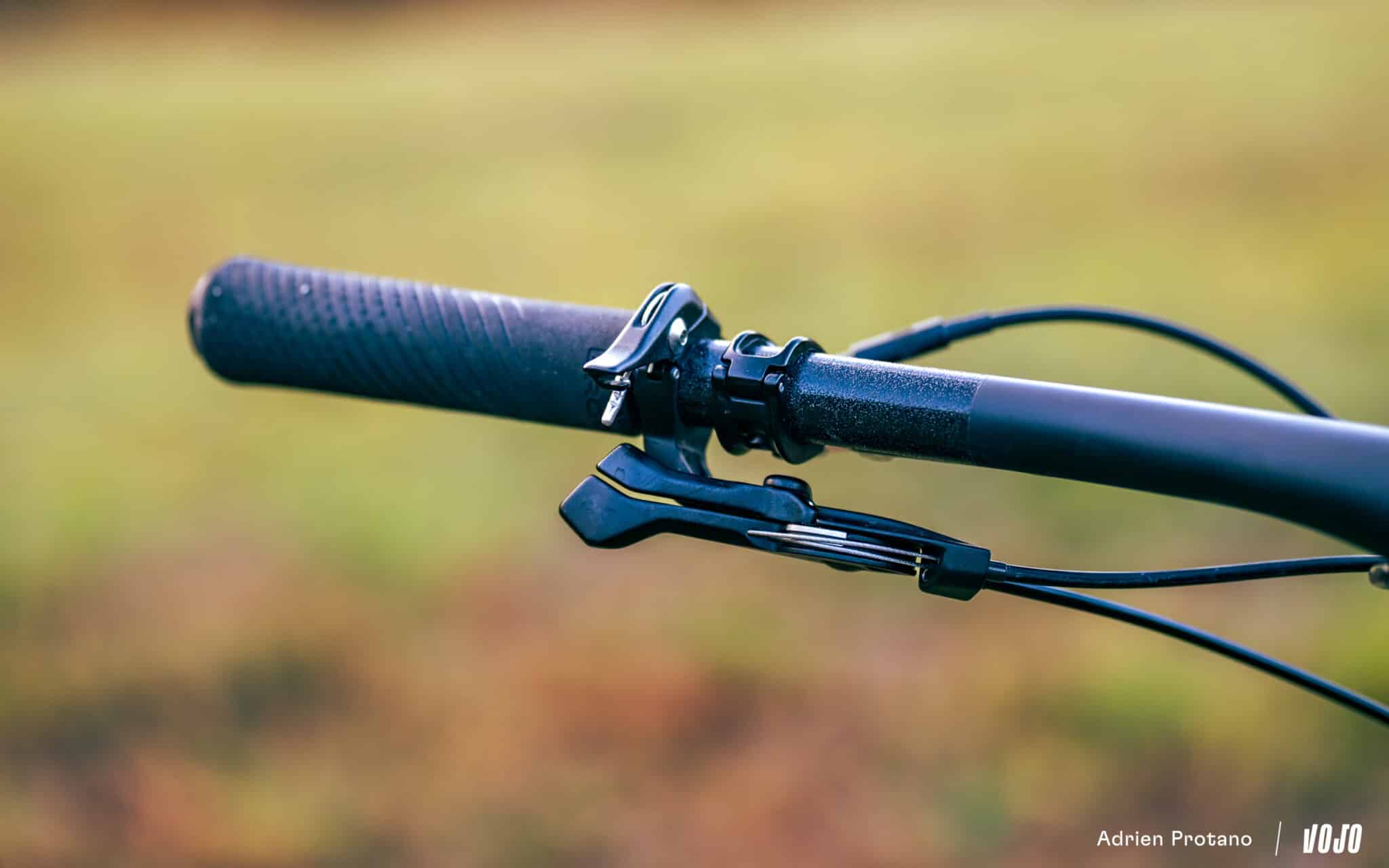 Au niveau du poste de pilotage, l’Occam SL est équipé d’une commande baptisée Squilock par Orbea, et qui permet de verrouiller la fourche et l’amortisseur d’un seul et même geste.