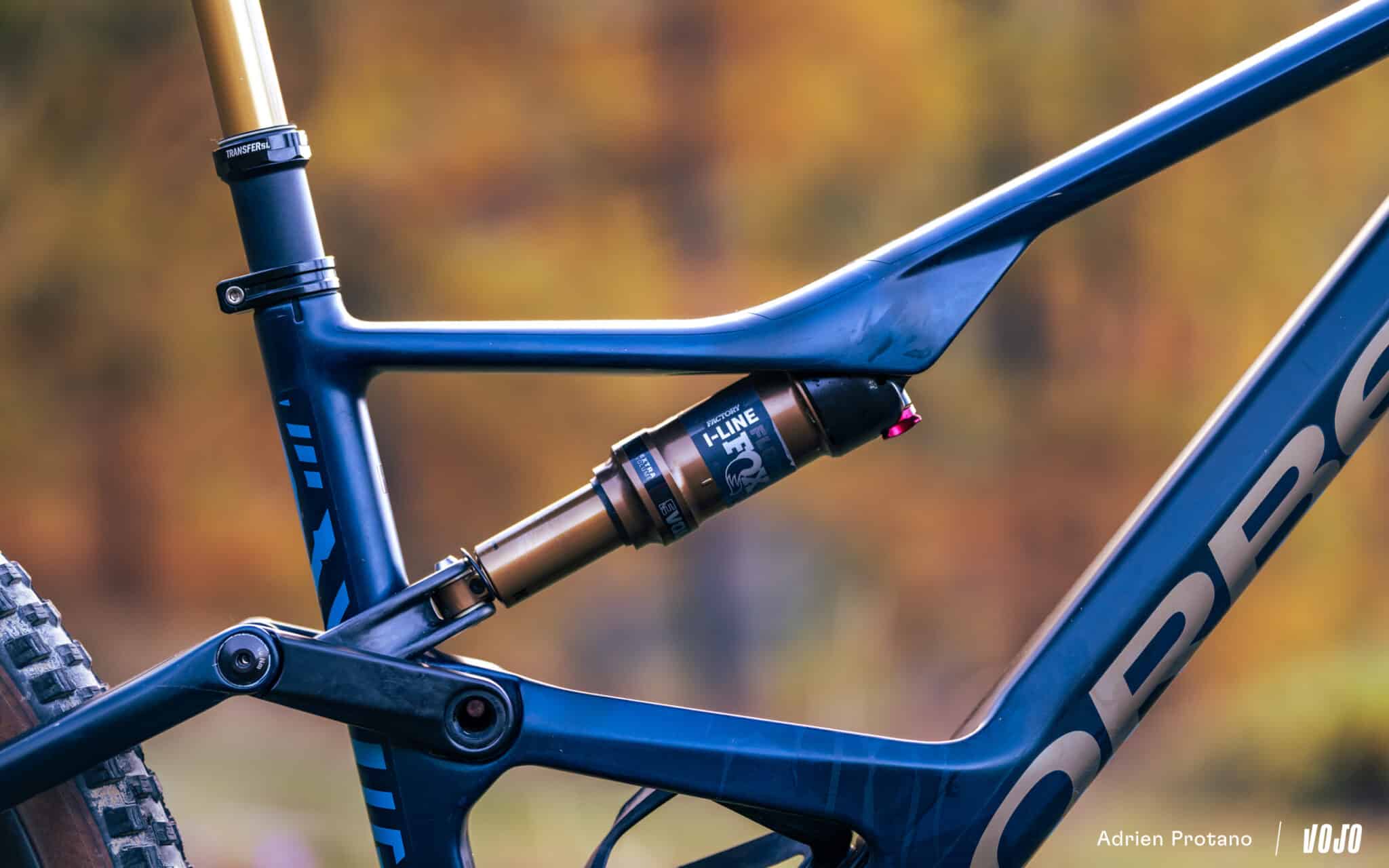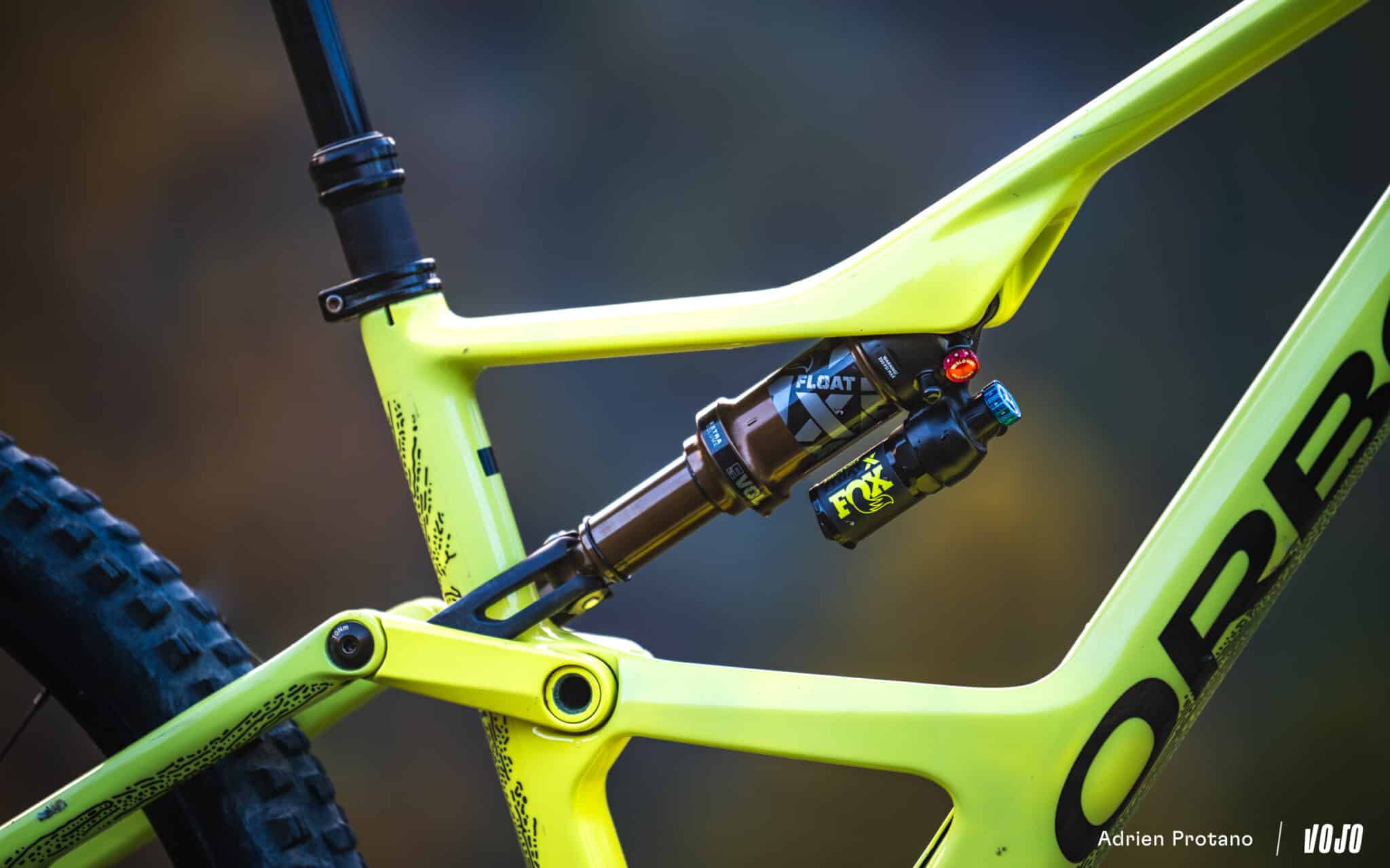 S’il nous a fallu un peu de temps pour trouver un réglage convaincant au niveau de l’amortisseur arrière sur la version SL, la version LT a été bien plus simple à régler. Orbea recommande un SAG de 30% à l’arrière, et c’est juste en dessous que l’on a trouvé les meilleures sensations, avec une sensibilité accrue et un meilleur accord avec la fourche, que l’on a roulé assez proche des recommandations de réglages faites par Fox.