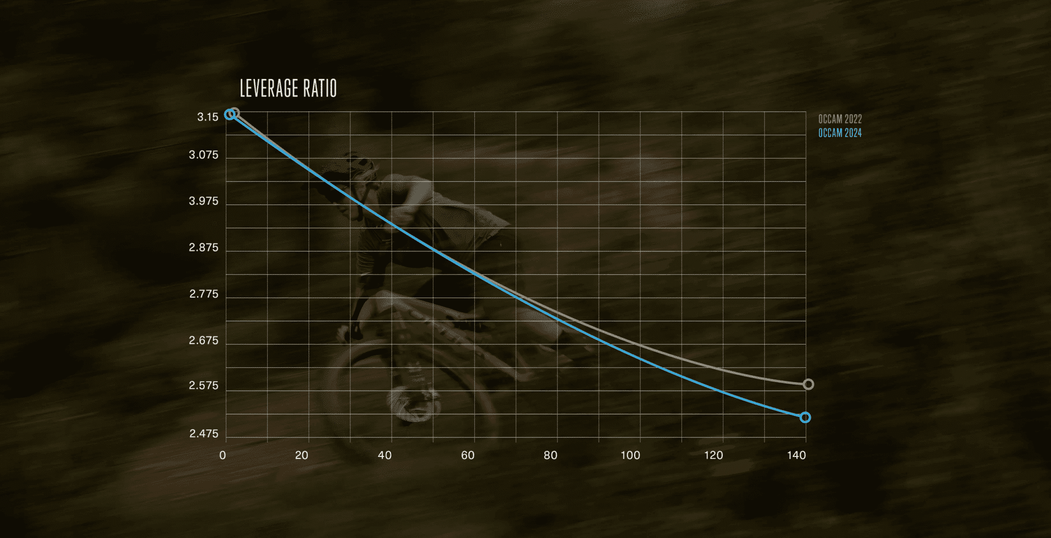 Légèrement revue par Orbea, la cinématique de l’Occam SL est fort similaire à l’Occam de la précédente génération (2% de progressivité et 2 à 3 % d’anti-squat en plus)… Une vérité qui est également valable pour l’Occam LT : « Plateforme identique oblige, le comportement intrinsèque de la suspension est très proche de celui de l’Occam SL (un tout petit peu plus progressif grâce au débattement plus important) et c’est donc sur la fourche et l’amortisseur que reposera le travail pour donner ce comportement plus « descendeur » à l’Occam LT », comme vous l’expliquait Léo lors de sa prise en main de la version LT.