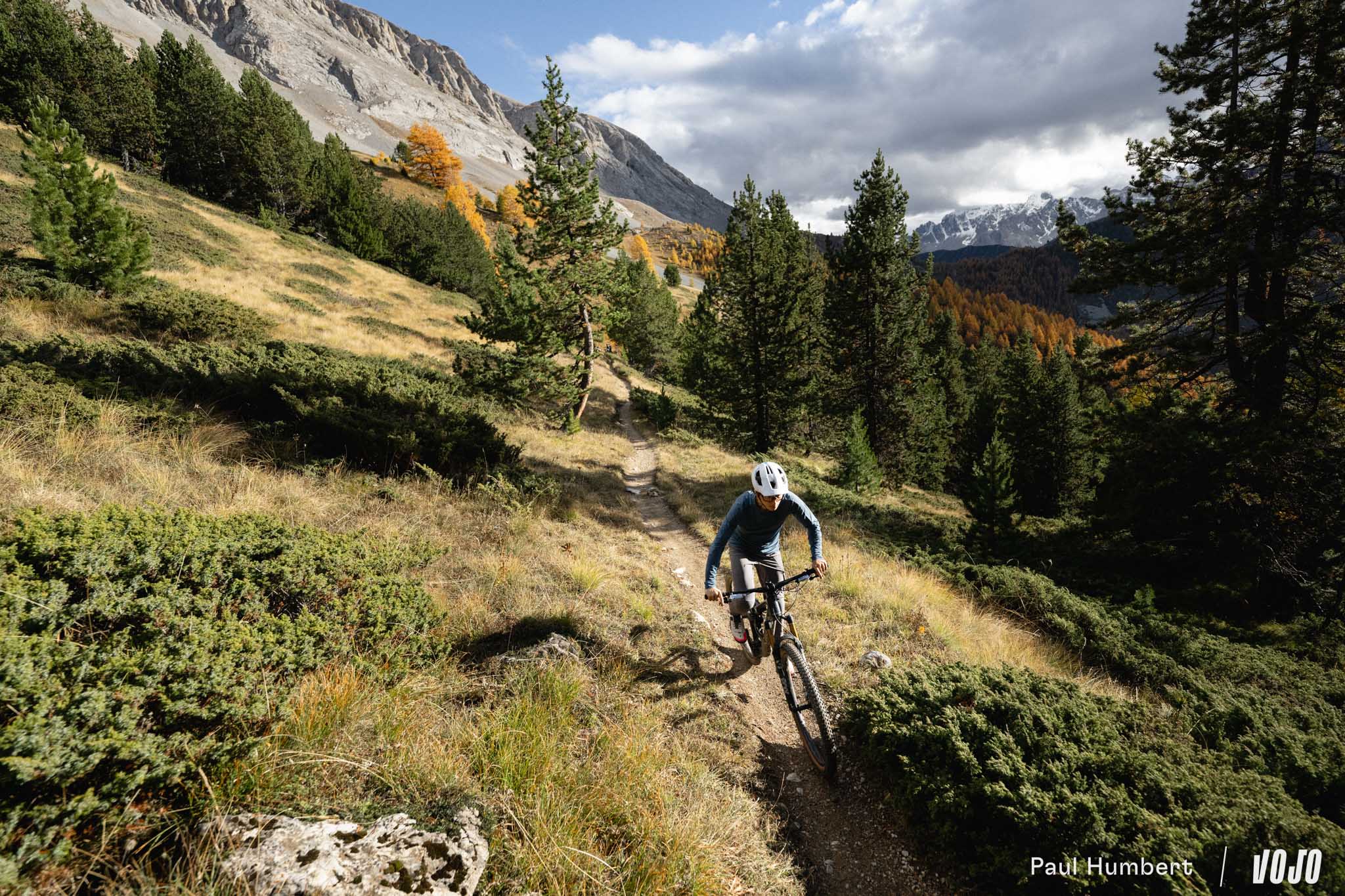 Lors des longues descentes du Queyras, on s’est rendu compte d’une petite faiblesse au niveau du choix des freins. Les Sram Level Ultimate de notre modèle d’essai ont eu tendance à surchauffer dans la pente. Sans surprise, on a trouvé que les pneus Schwalbe Wicked Will avaient tendance à fort limiter le châssis. On conseillera des pneus un cran supérieur en termes de carcasse et de crampons pour libérer tout le potentiel de ce modèle, surtout pour des terrains accidentés et/ou à la montagne. Par contre, pour les personnes à la recherche d’un châssis très roulant et se rapprochant davantage d’un cross-country, les pneumatiques de série feront sens.