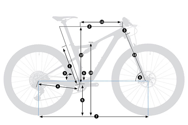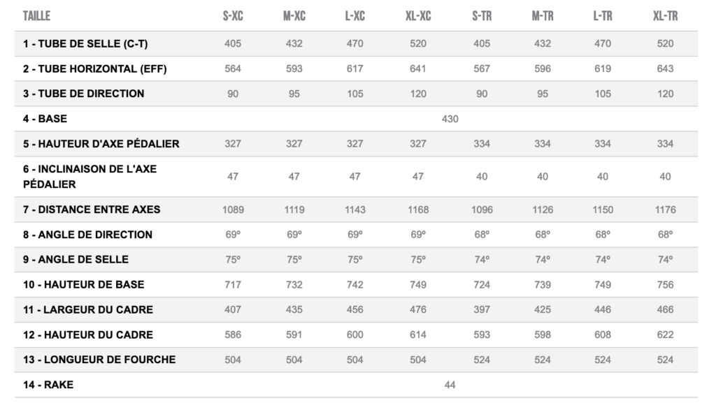 Par rapport aux modèles lancés plus récemment, comme les derniers BMC Fourstroke, Cannondale Scalpel ou Specialized Epic, cette géométrie apparaît assez conservatrice avec un angle de direction de 69° et un reach court (435 mm en taille M). Avec ses bases et son empattement eux aussi courts, on comprend que l’Oiz version « XC » est un vrai vélo de compétition qui mise sur le dynamisme en toutes circonstances, quitte à perdre un peu de tolérance et de polyvalence.
