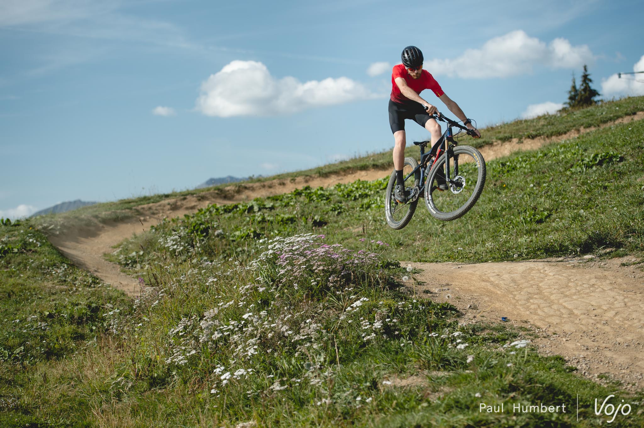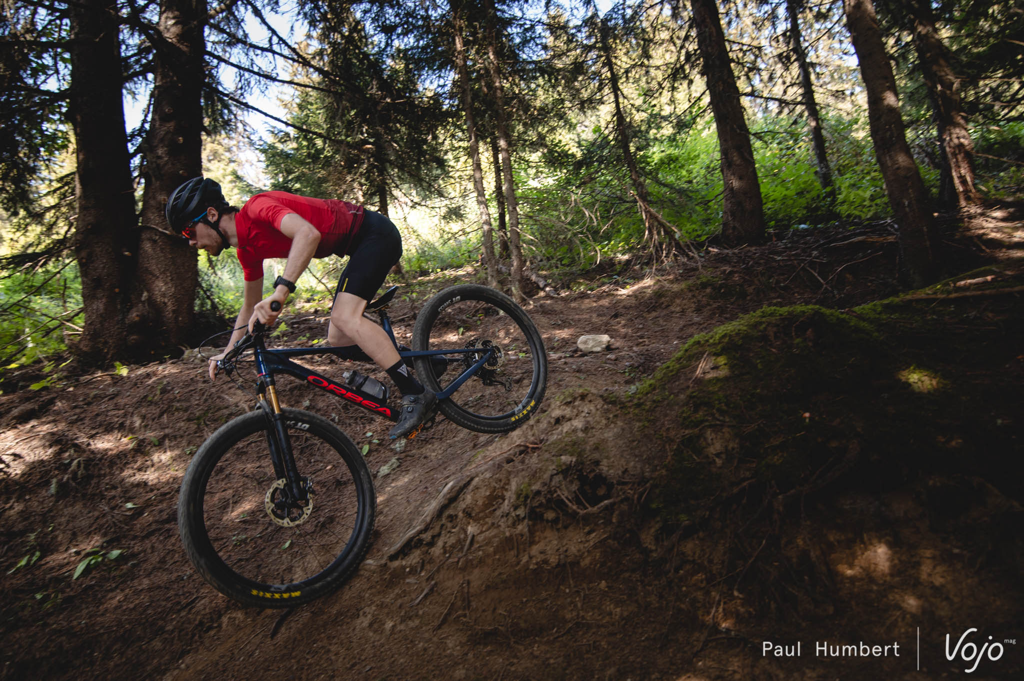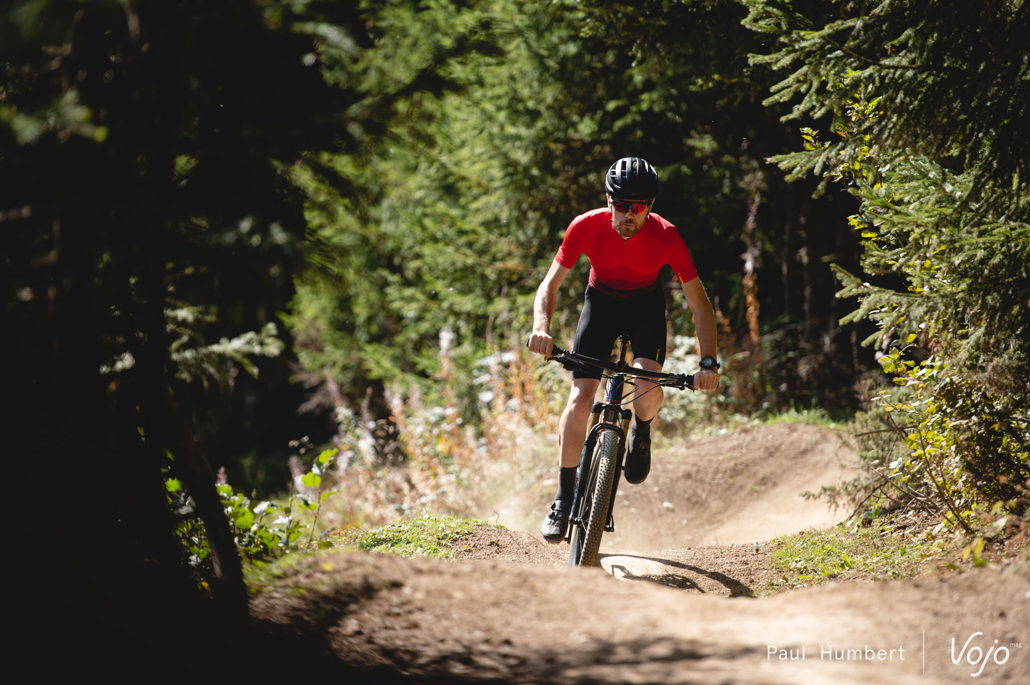A ce sujet, on apprécie la présence d’un mode « intermédiaire » où l’amortisseur reste fermé (pas complètement verrouillé, ce qui permet d’avoir une petite marge de sécurité) mais la fourche est ouverte. On se retrouve plus ou moins avec un semi-rigide, où l’avant est capable d’encaisser les chocs sans déstabiliser le pilote tandis que l’arrière offre un bon rendement, avec une once de grip en plus par rapport à un véritable semi-rigide. C’est quelque chose qui nous avait manqué sur les premières versions (qui n’avaient que deux positions, tout ouvert et tout fermé) et c’est clairement le mode sur lequel nous avons passé le plus de temps, ne revenant sur le tout ouvert que pour les descentes ou les sections réellement techniques en montée.