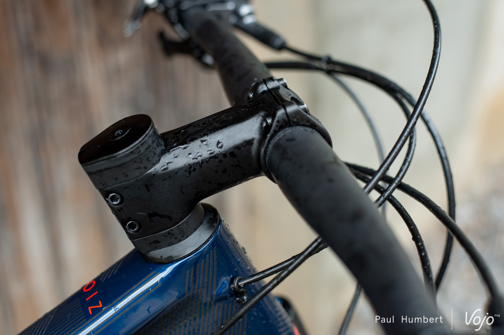 Enfin, on notera la présence d’un poste de pilotage Orbea Components (de discrets sigles OC apparaissent sur les composants) avec une potence en aluminium de 75 mm de long sur notre taille L, couplée à un cintre en carbone de 760 mm de large.