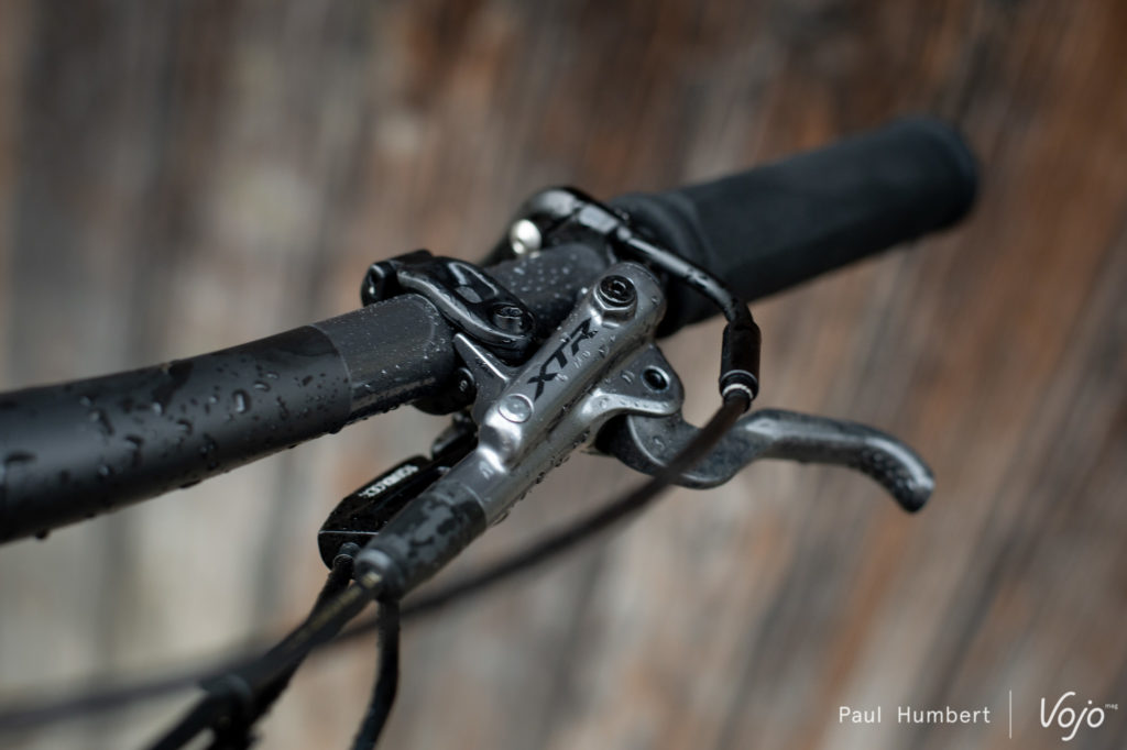 Côté freinage et transmission, c’est Shimano XTR à tous les étages avec une cassette en 10-51 couplée à un pédalier en 34 dents et des étriers 2 pistons associés à des disques en 180/160 mm.