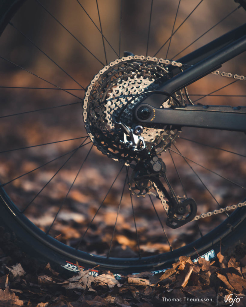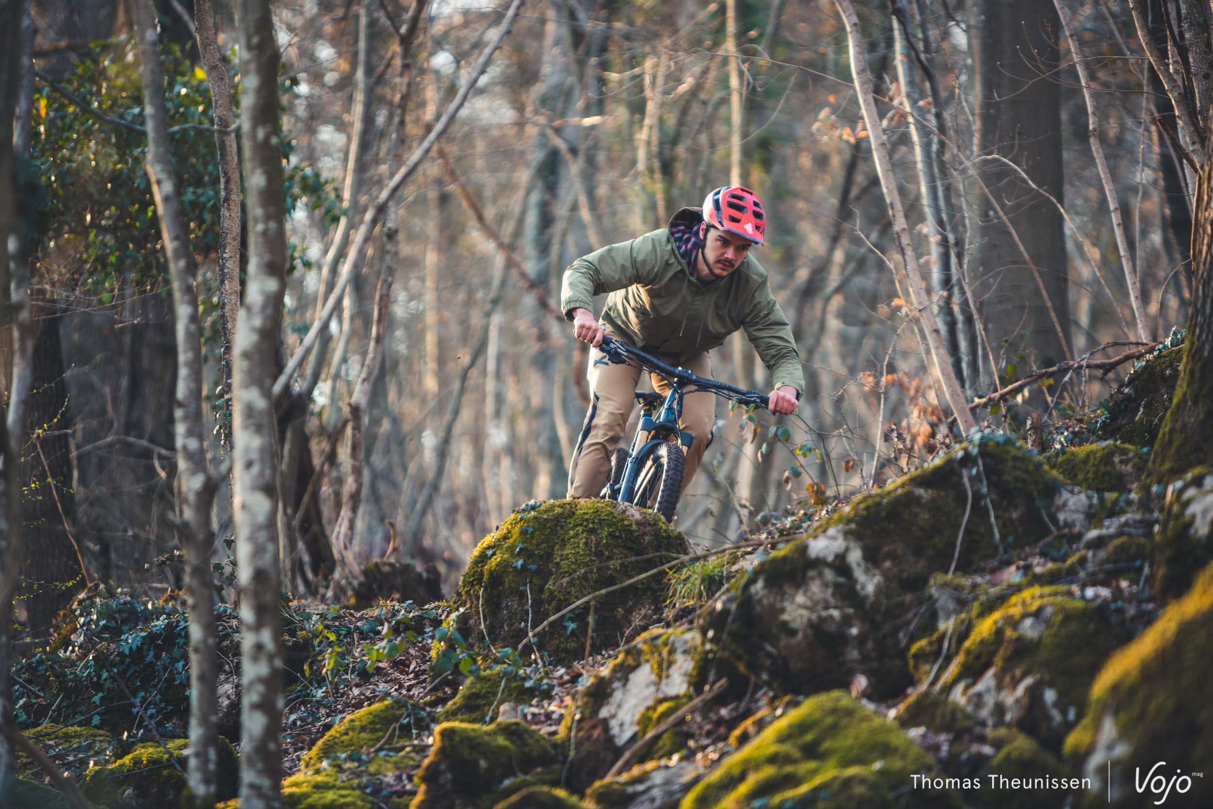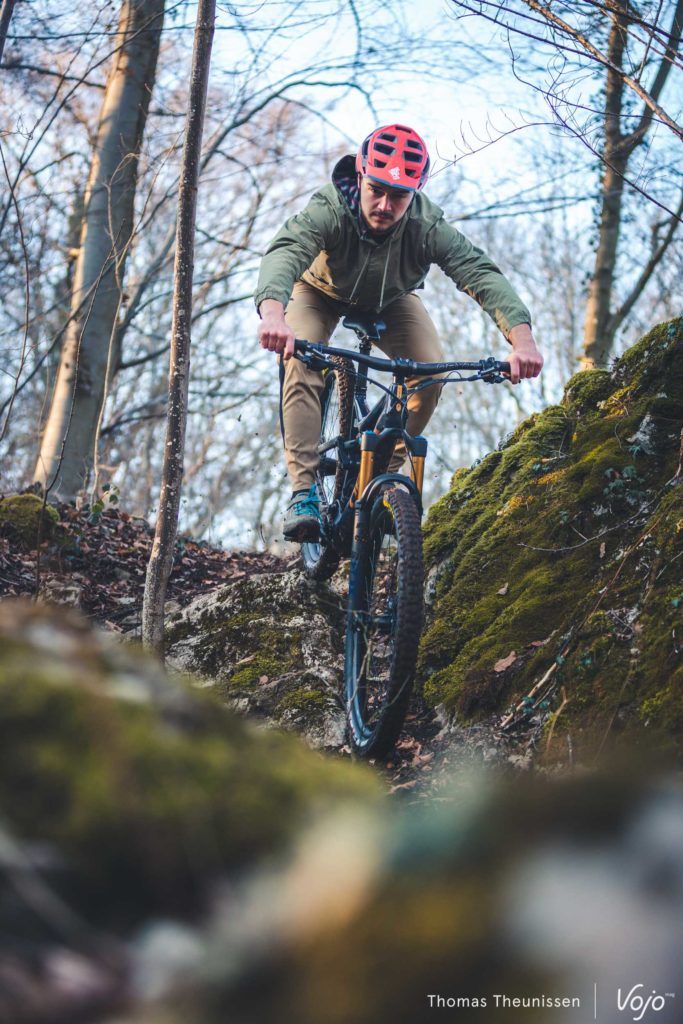Par contre, là où on apprécie beaucoup d’avoir le support du moteur, c’est dans les grimpettes techniques, où c’est un vrai monstre. Le couple supérieur à un Levo SL se sent assez clairement, et permet de se rapprocher des capacités dans la pente d’un e-bike classique… voire mieux dans certains cas, notamment quand l’adhérence est précaire, car la douceur et la manière dont est distillée l’assistance permettent de se jouer beaucoup plus subtilement et habilement des difficultés du terrain, qu’on soit un pratiquant expert ou moins aguerri. Même en mode Boost, on garde cette subtilité dans l’arrivée de l’assistance qui permet de disposer d’un couple respectable et d’une puissance très correcte, sans devoir trop se concentrer pour la gérer.