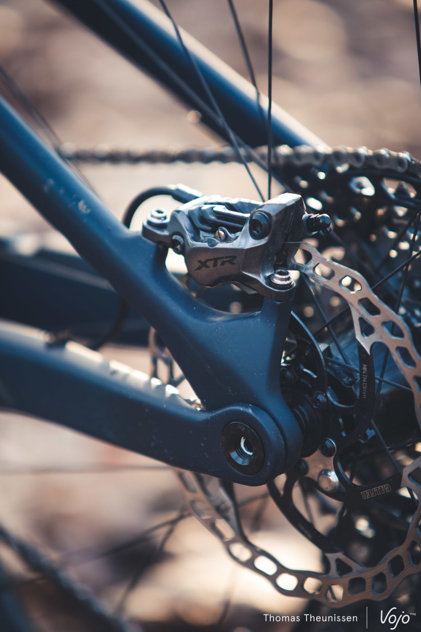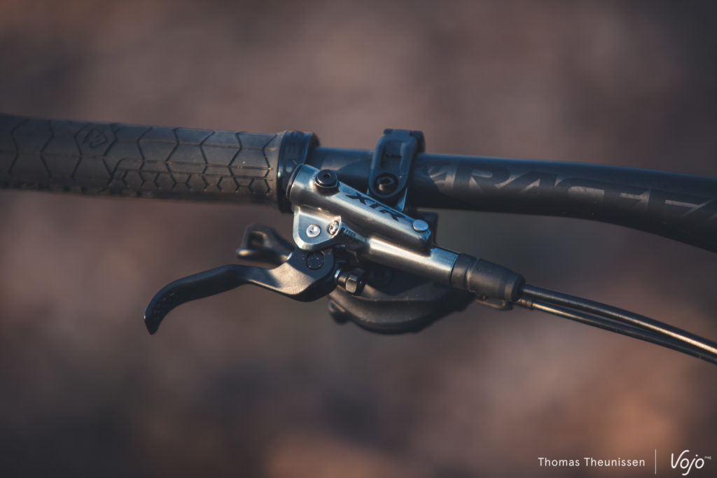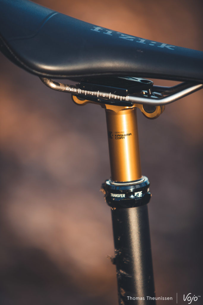 Au niveau des équipements, cette version Team est équipée de beaucoup de raffinements, comme une transmission et des freins Shimano XTR, ou encore des suspensions Fox Factory avec revêtement Kashima sur les plongeurs. A noter que ces suspensions sont déjà présentes sur le M10 juste en dessous dans la gamme. On note aussi la présence d’originales roues Race Face Turbine avec jantes alu en 30mm de largeur et d’imposants moyeux dont l’arrière fait une jolie mélodie avec sa roue libre à cliquets très rapprochés. Comme les versions LTD et M10 (à l’exclusion du M20), le Rise Team est éligible au programme de personnalisation MyO permettant de choisir ses combinaisons de peinture parmi un large panel. Des options de montage sont aussi disponibles, et notre modèle est équipé d’une fourche Fox 36 en 150mm de débattement en lieu et place de la Fox 34 en 140mm proposée d’origine. Quant au poids, nous l’avons mesuré à 17,58kg sur notre balance, en taille L.