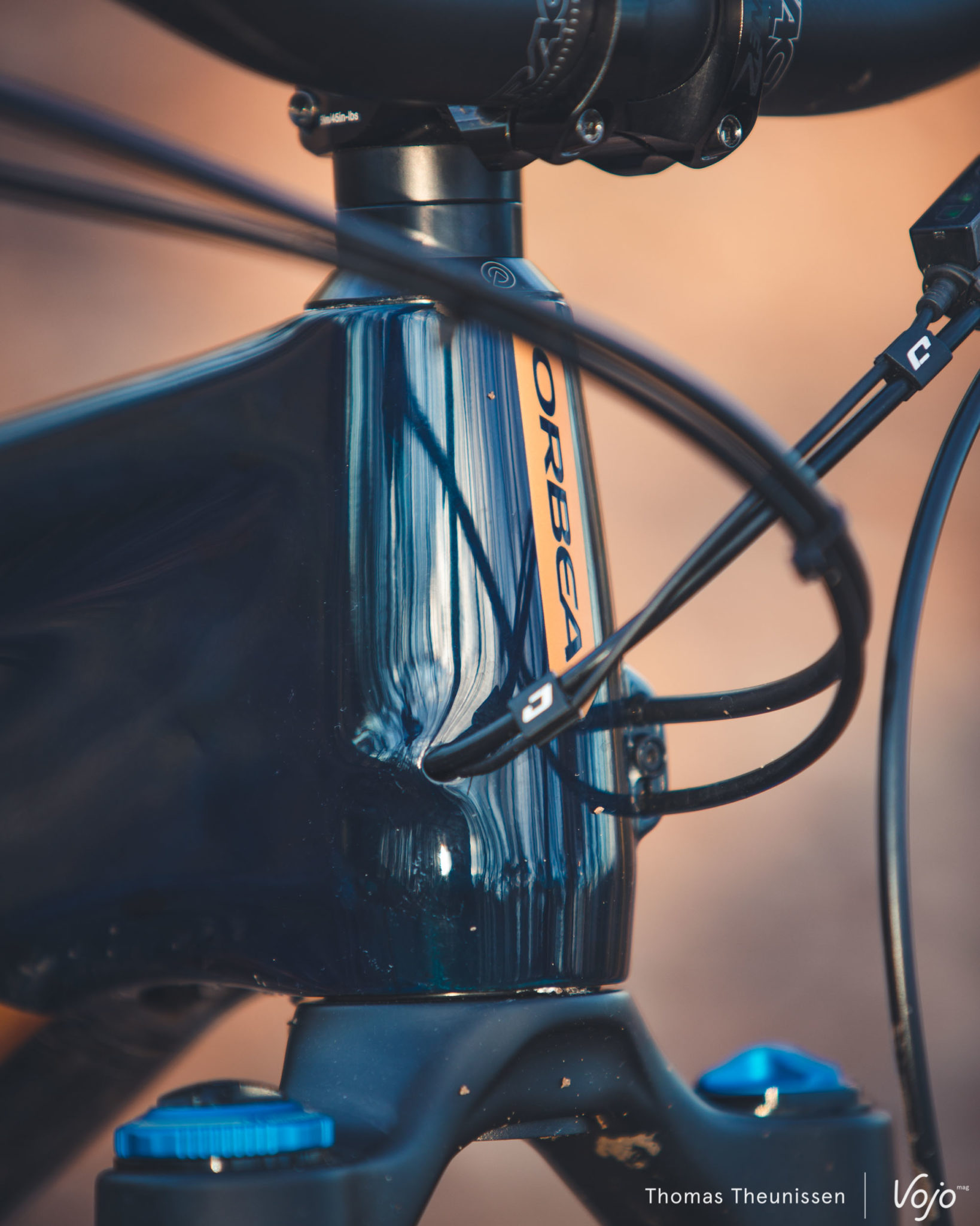 Au final, le range extender ne nous a pas été d’une grande utilité, et pour vraiment le tester, nous avons envie de nous lancer dans un défi : boucler les 176km du Stoneman Arduenna avec le Rise, en une journée, sans ravitaillement électrique, avec simplement la batterie intégrée et l’extender ! Nous vous expliquerons cette aventure dans un article dédié quand nous aurons concrétisé la chose mais le défi nous semble tout à fait possible à relever. Pour ce genre de défi, nous aurons certainement besoin de la connectique du Rise développée par Orbea avec les appareils Garmin, afin de visualiser le kilométrage et l’autonomie de manière précise. Autrement, d’origine, on ne dispose que d’un tout petit afficheur avec juste une diode posée sur un des câbles du système. Très minimaliste, limite trop, mais cela s’intègre dans la philosophie générale du vélo et les possibilités de connexion avec des applications tierces permet de répondre à la demande de ceux qui aiment avoir des infos sous les yeux.