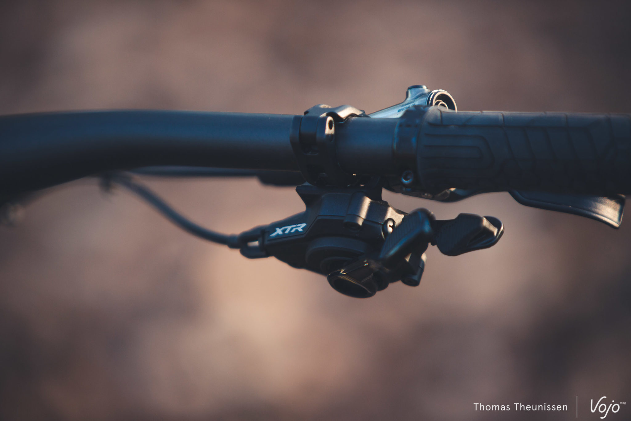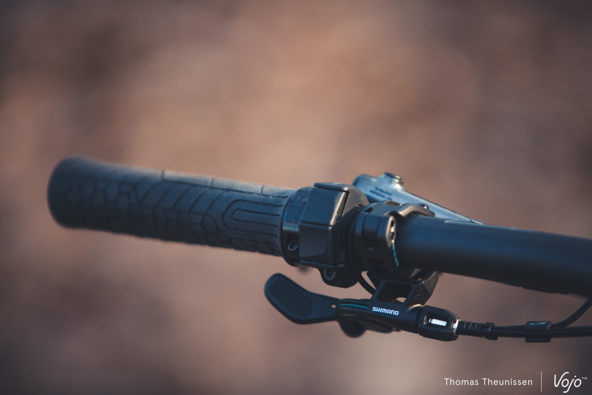 Au niveau des points négatifs remarqués à l’usage, il n’y en a pas beaucoup, mais il y en a tout de même quelques-uns. Tout d’abord la tige de selle avec seulement 125mm de débattement n’est pas vraiment en accord avec le reste du vélo. 150mm aurait été mieux ! Nous avons aussi eu des soucis de desserrage récurrent d’une des manivelles E13, finalement solutionnés avec une nouvelle vis de butée. Enfin, même si nous aimons les afficheurs discrets sur les e-bikes, là les mini diodes placées sur un câble à l’avant du poste de pilotage sont vraiment trop minimalistes et difficilement lisibles. Les différences de couleur entre les différentes diodes correspondant aux différents modes sont aussi trop faibles pour vraiment être visibles sur le terrain. Bref, de petits points à améliorer, mais rien de rébarbatif.