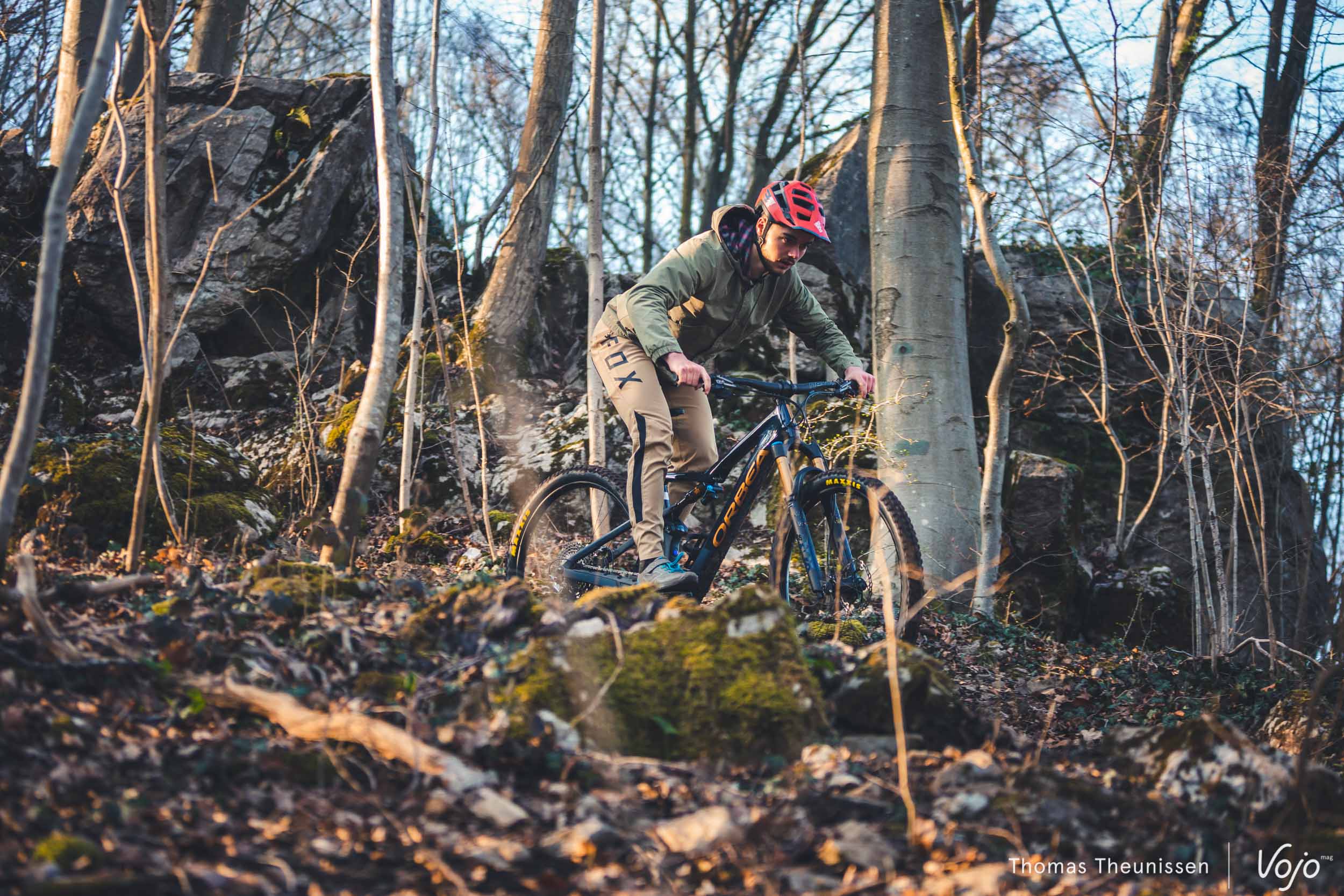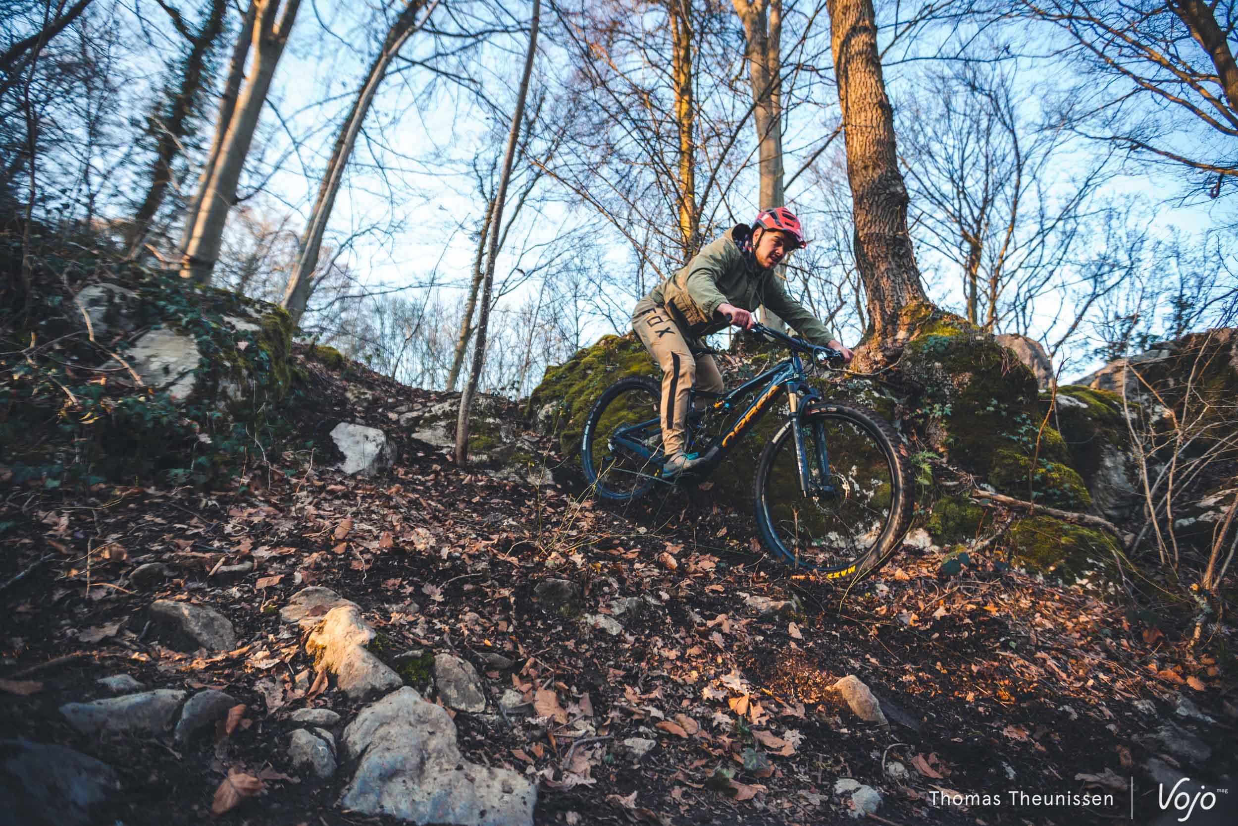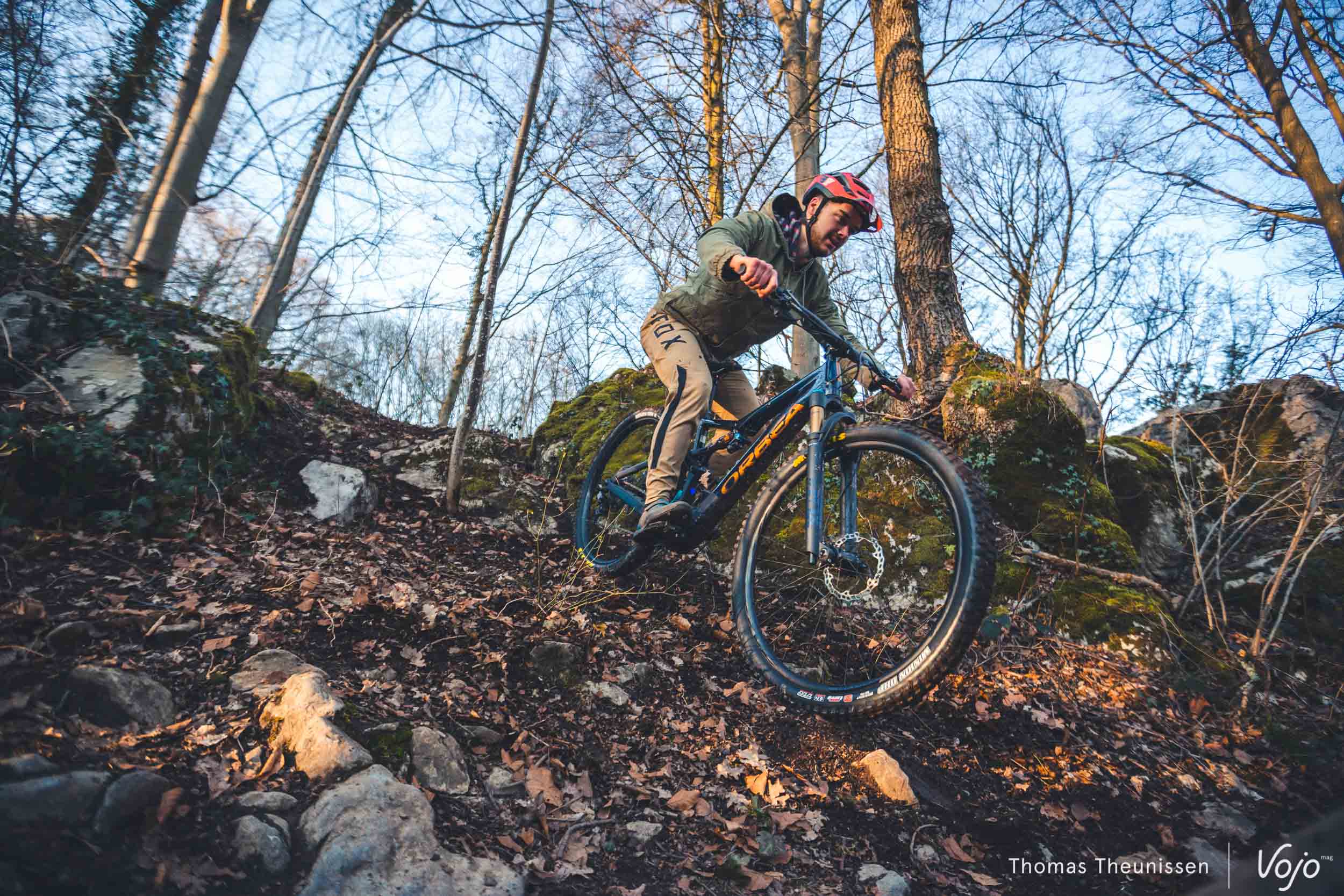 En côte et sur le plat, on apprécie l’angle très redressé du tube de selle, qui offre une position remarquable pour le pédalage. Ajoutez à cela la suspension arrière qui sait se montrer neutre quand il s’agit d’appuyer sur les pédales, et vous obtenez un cocktail très intéressant… qui joue aussi un rôle important quand il s’agit d’envisager de grimper et de rouler sans aucune assistance. Pour vous situer, à ce niveau, on a aussi eu l’impression de rouler sur un Rallon… Car, sans assistance, ce Rise grimpe comme un bon bike d’enduro !