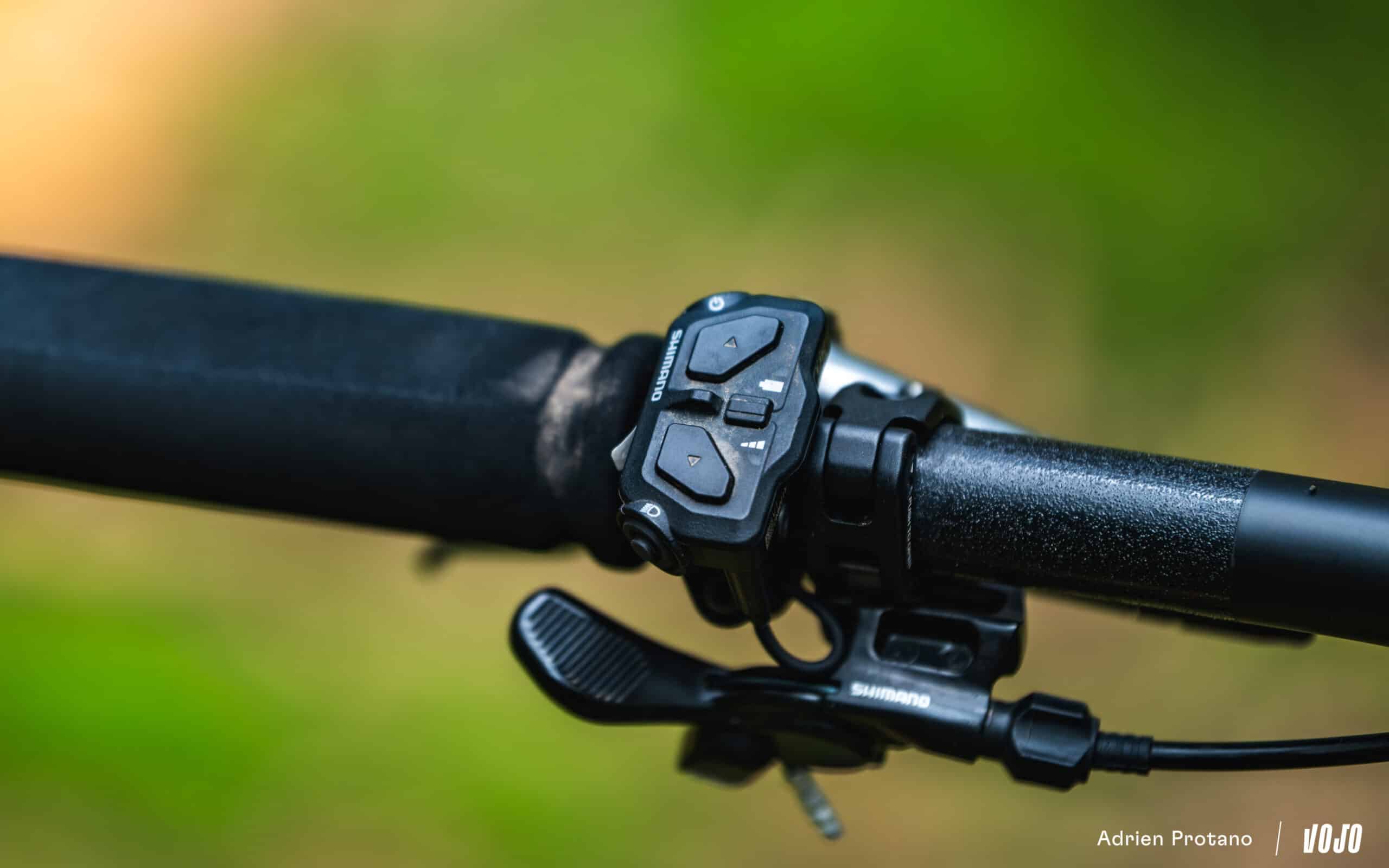De série, c’est uniquement la minimaliste commande Shimano au guidon qui a la responsabilité de commander tout ce petit monde. Simple et efficace, celle-ci peut-être couplée à un GPS Garmin si l’on désire avoir toutes les informations sous les yeux, ou à un écran Shimano si on le souhaite (l’option est disponible sur le configurateur en ligne de la marque, moyennant un supplément de 149 €). On rappelle également que cette assistance est compatible avec l’application smartphone gratuite « Shimano E-Tube » permettant de personnaliser les modes d’assistance de son vélo.