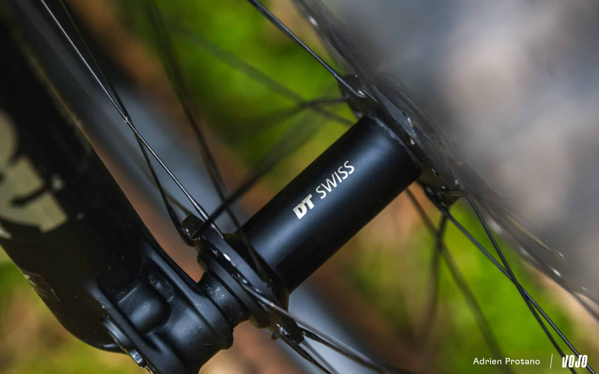 La transmission est une Sram XX T-Type, avec un plateau de 34 dents et une cassette 10-52. Pour plus d’infos sur cette excellente transmission électronique, c’est par ici : Test | Sram Eagle AXS 2023 : sans égal.