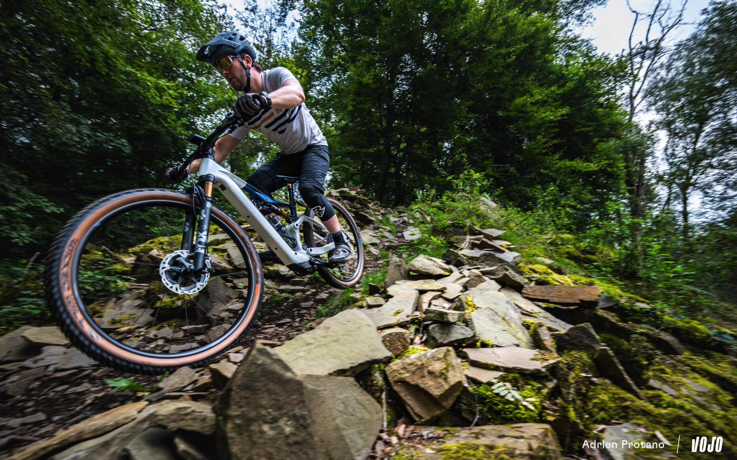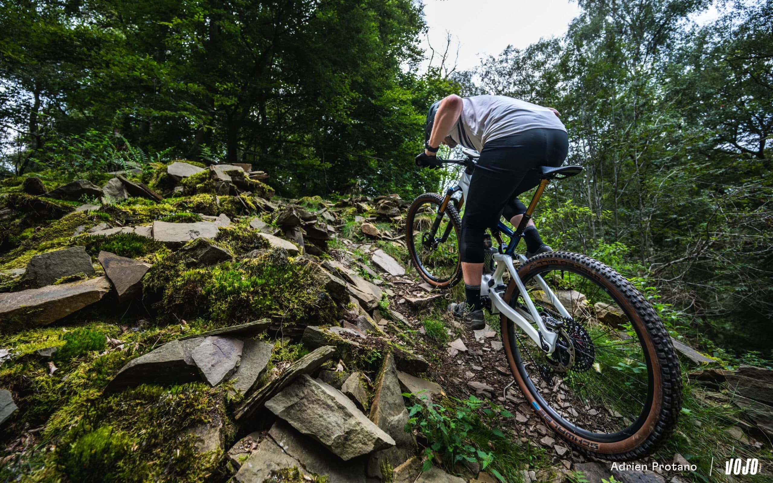 Aujourd’hui, Orbea a eu la très bonne idée de décliner le Rise en deux saveurs : le LT que nous avions testé lors de la présentation dans les Pyrénées et le SL que nous avons reçu pour ce test à la rédaction belge de Vojo. Bref, à partir d’une même base, on peut avoir des versions qui sont directement mieux adaptées à différents terroirs, sans qu’il faille recourir à une customisation particulière. D’ailleurs, on s’est plusieurs fois dit pendant cet essai que nous aurions pu refaire le Stoneman quasi sans aucune modification avec le nouveau Rise SL.