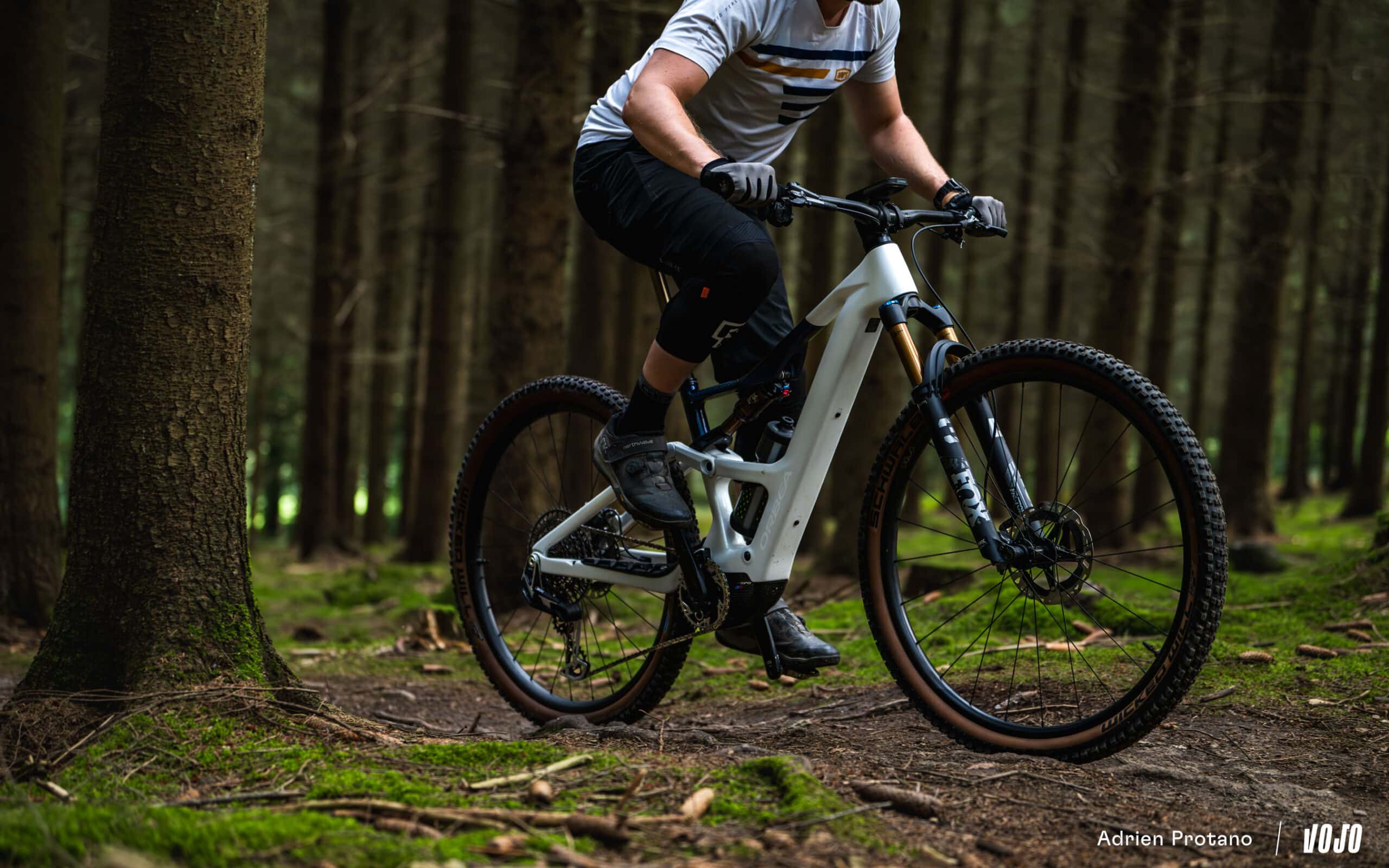 Quid de l’autonomie ? Eh bien, grâce à la nouvelle batterie de 410Wh et à la gestion raffinée du moteur Shimano EP801, elle est encore plus impressionnante que sur la première version. Ce qui n’est pas peu dire ! On peut envisager de longues sorties avec largement plus de 2000 m de d+ en mode RS, sans trop réfléchir au mode utilisé mais en jouant la carte de l’équilibre avec l’énergie fournie par les jambes (pilote de 75/80kg). Même en étant dans une carto qui grimpe jusque 85 Nm, on peut passer allègrement les 1500 m de d+ sans trop réfléchir aux modes utilisés. Si on est joueur et prêt à pédaler sans assistance, on peut certainement aujourd’hui envisager un Stoneman (180 km et 4000 m de d+)… sans range extender ! Bref, c’est absolument bluffant et très agréable de rouler sans vraiment se soucier de l’autonomie de sa batterie. En sachant, en plus, que si jamais elle se vide, on dispose d’un vélo qui se roule comme un gros all-mountain classique et qui n’a rien d’un calvaire à ramener au bercail sans assistance.