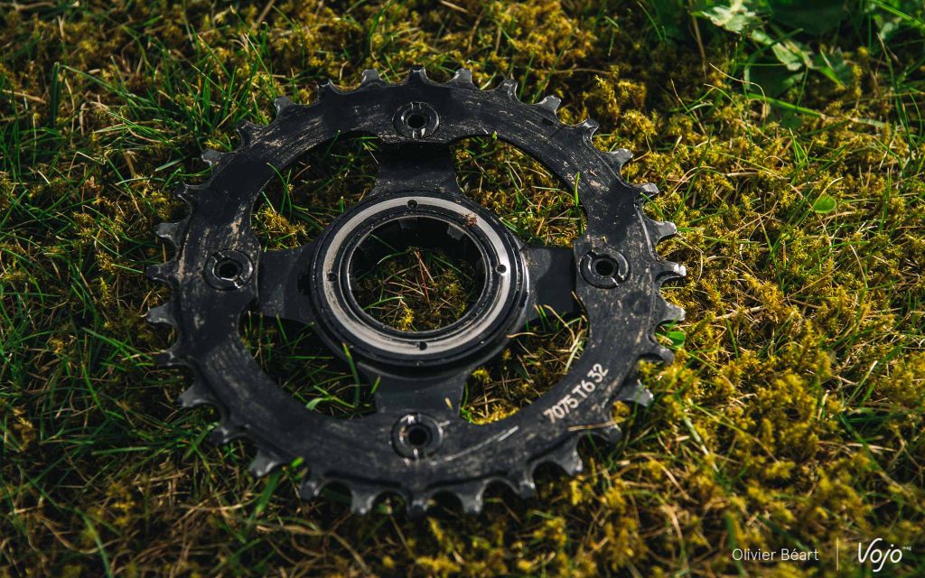 Le montage sur le cadre est assez simple et le mode d’emploi bien clair, même si nous avons dû jouer un peu avec des petits spacers pour éviter que la roue-libre frotte contre le boîtier de pédalier, puis avec des rondelles à placer au niveau des vis de fixation du plateau (fournies) pour bien recentrer ce dernier. Par précaution, il convient aussi de vérifier que le dérailleur arrière est réglé aux petits oignons car une transmission constamment en prise ne tolère pas les approximations.