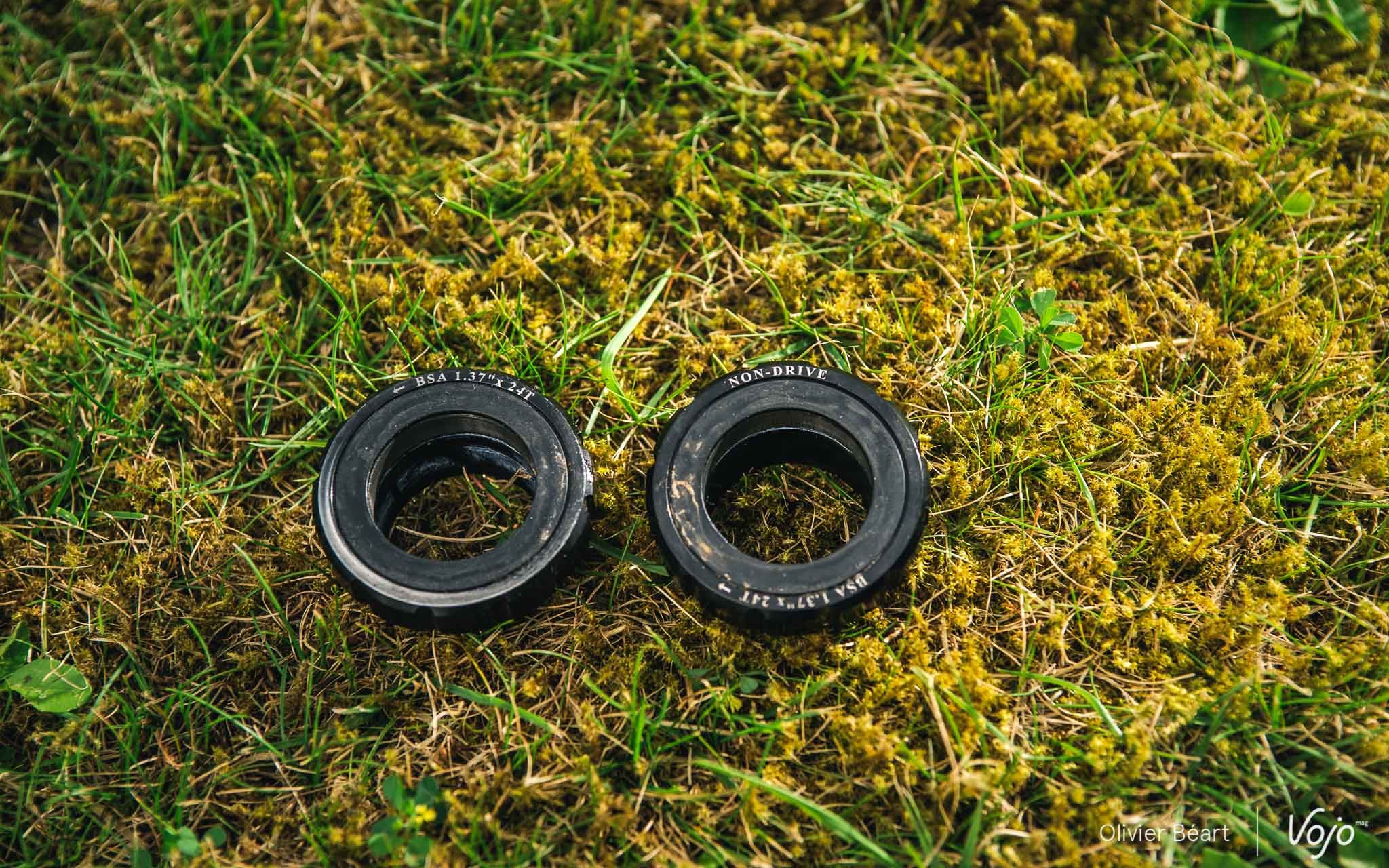 Le pédalier est également livré avec un boîtier de pédalier. Différentes options existent, permettant le montage sur (presque) tous les cadres du marché. Ici, c’est le modèle fileté que nous avons testé.