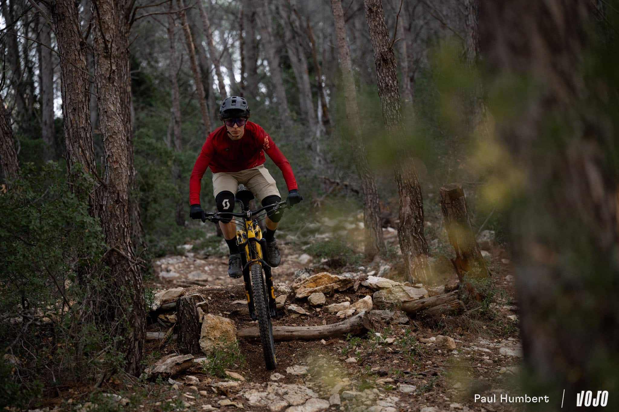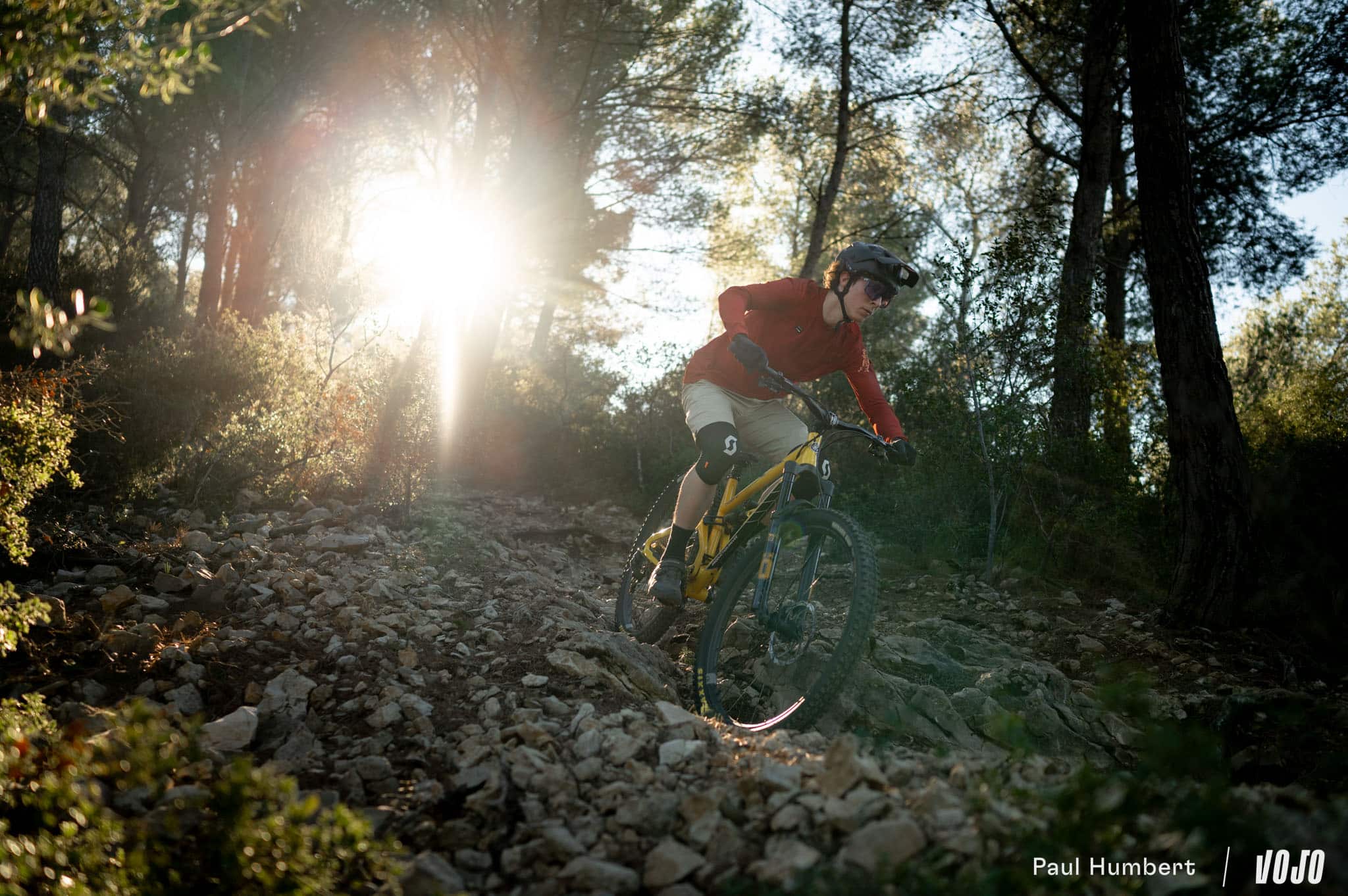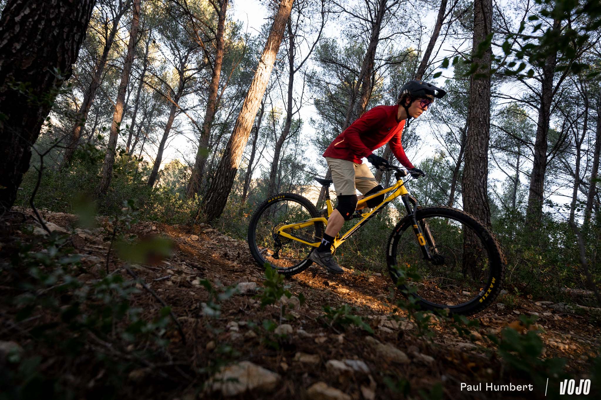 En descente, il nous a offert deux visages. Sur les sentiers flow sans trop de cailloux ou de racines et avec de beaux appuis, c’est un petit jouet. Il virevolte de virage en virage et prend la direction des airs dès qu’on lui demande, le tout avec une impression de facilité qui donne le sourire. « Une fois que t’as compris le truc de « tu pousses dessus et il te rend » ça marche assez bien et ça donne envie de jouer avec », nous glissait un de nos testeurs.