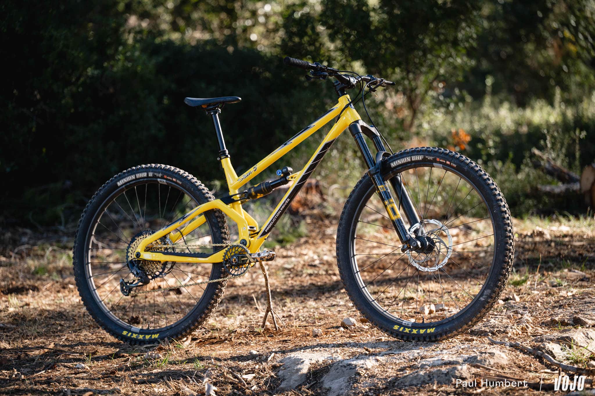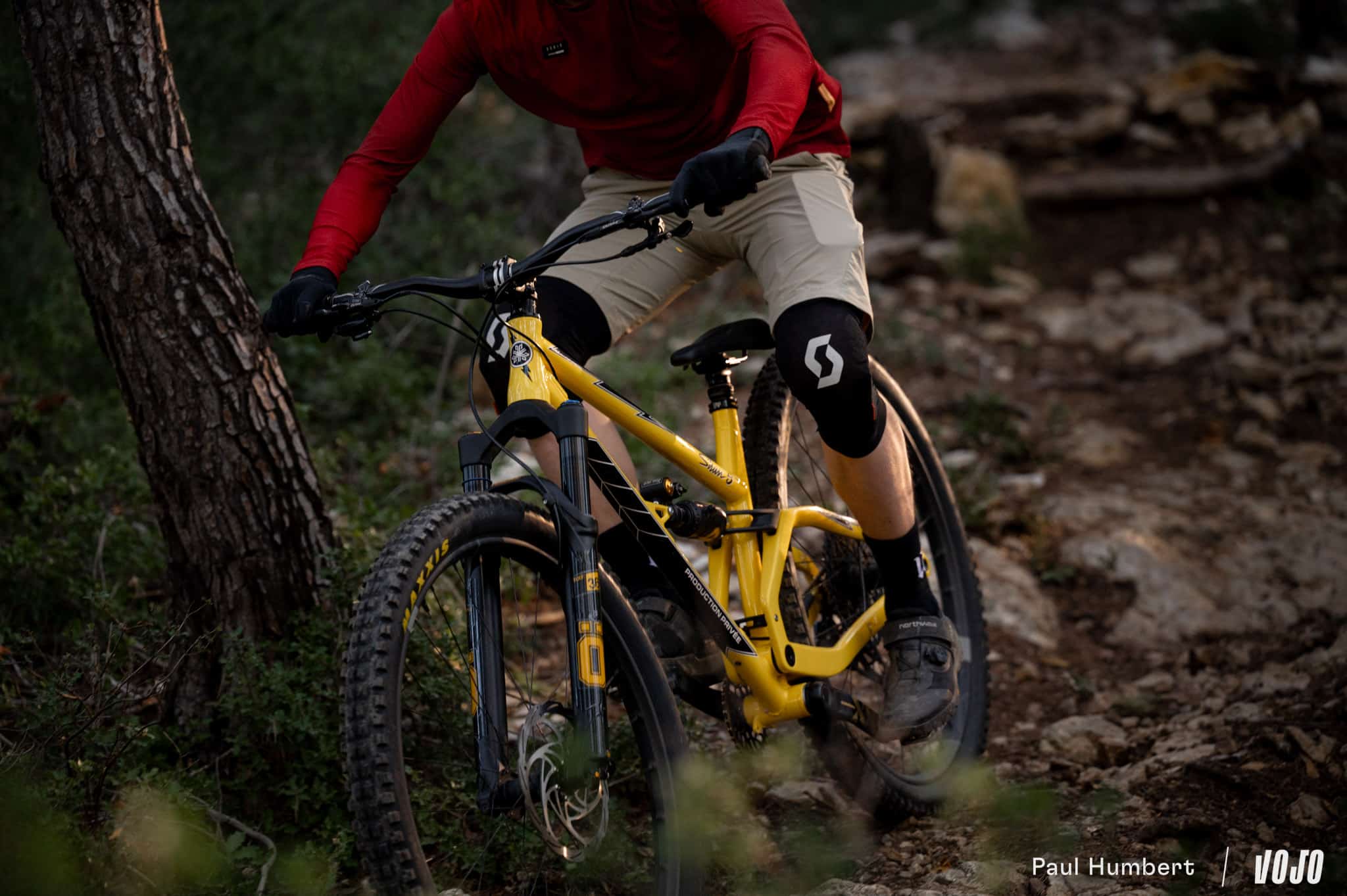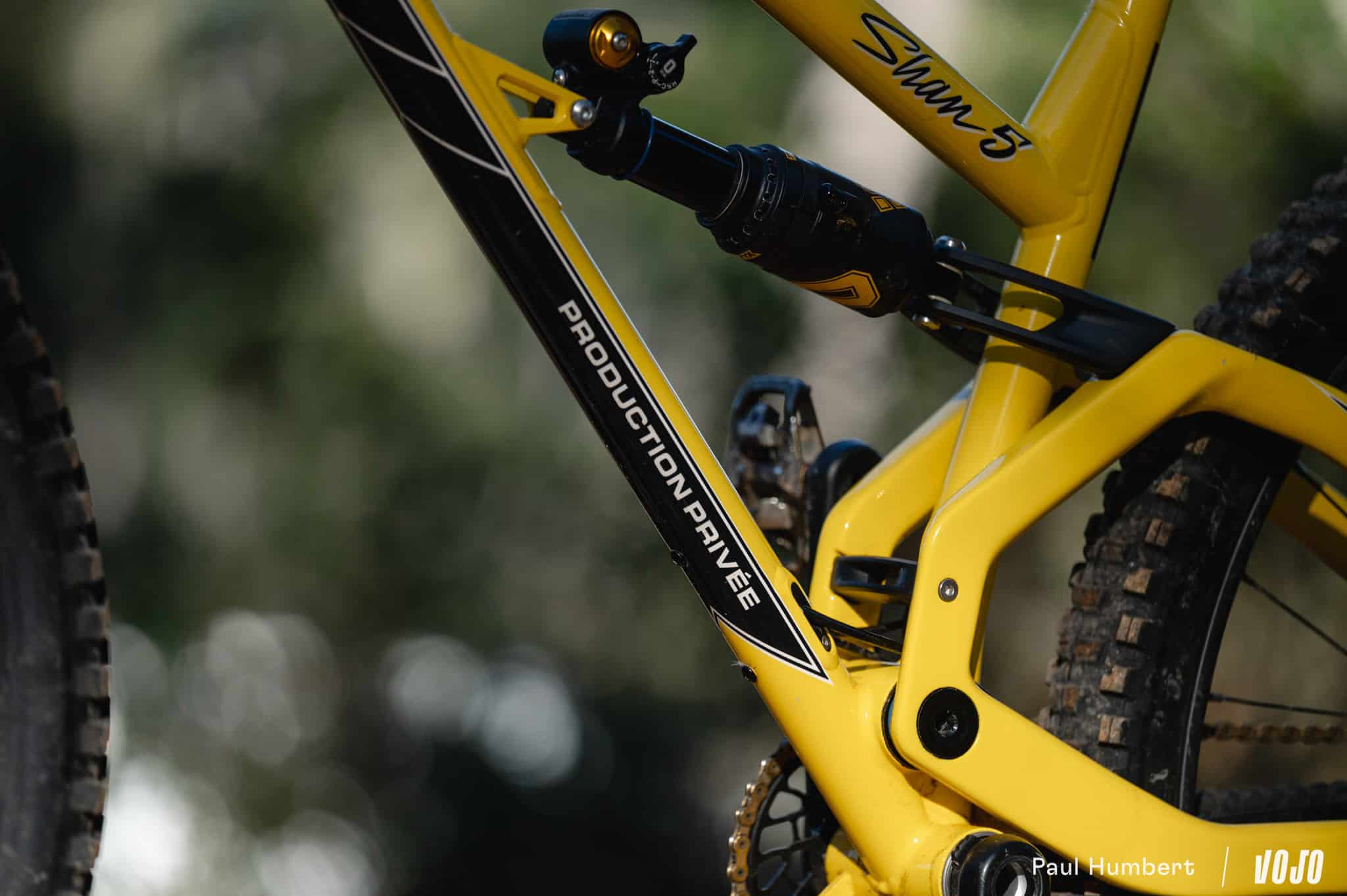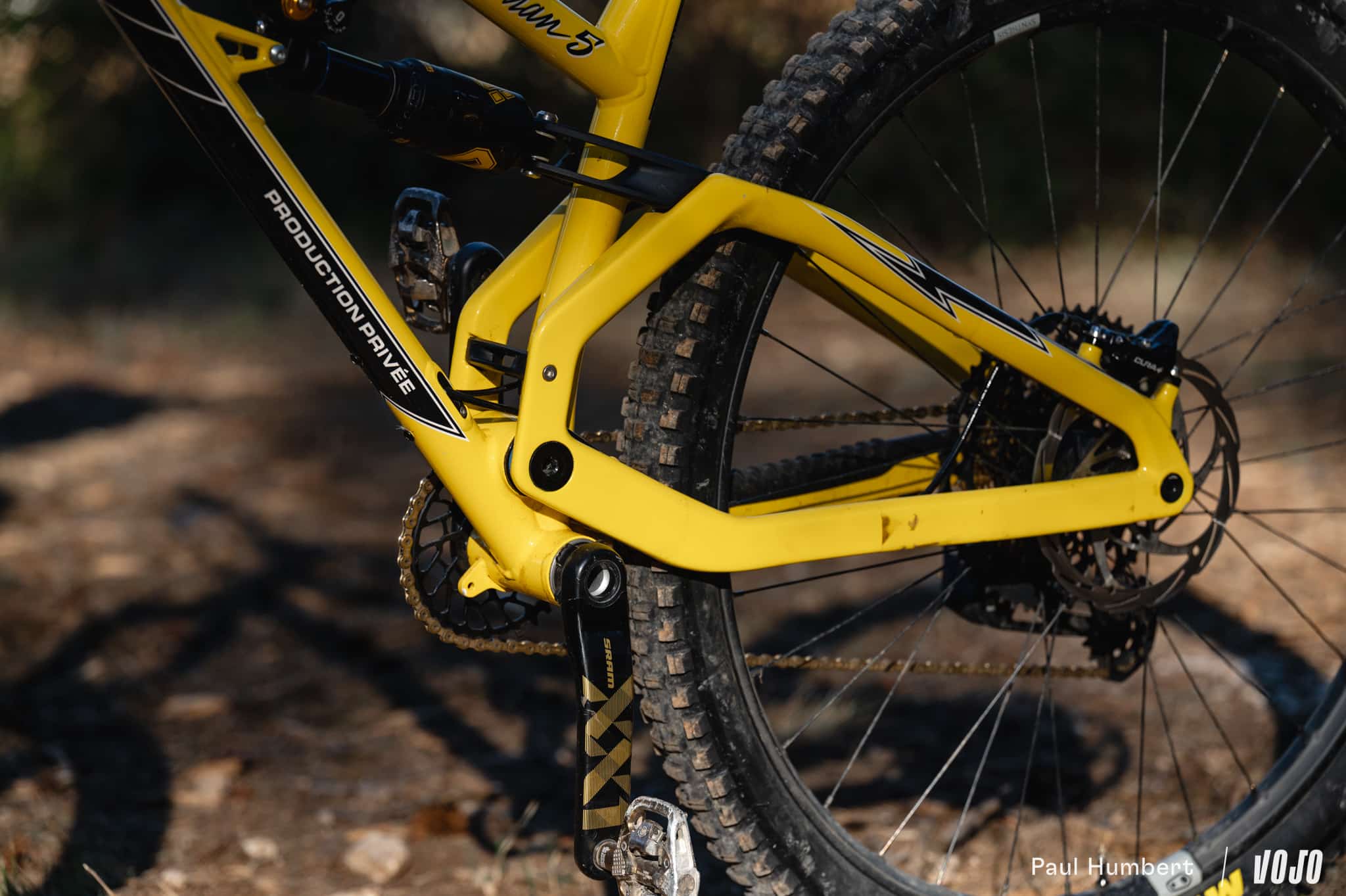 On peut sentir, dans certains appuis notamment, une rigidité moins importante que des tout-suspendus en carbone de grande production mais la marque ne s’en cache pas. Pour elle, la plupart des cadres sont raides aujourd’hui, voire trop raides pour certains styles ou niveau de pilotage. Malgré l’usage d’un triangle arrière en carbone sur ce Shan 5, Production Privée a voulu garder cette philosophie de vélo tolérant et très accessible tirée de ses premiers semi-rigides.