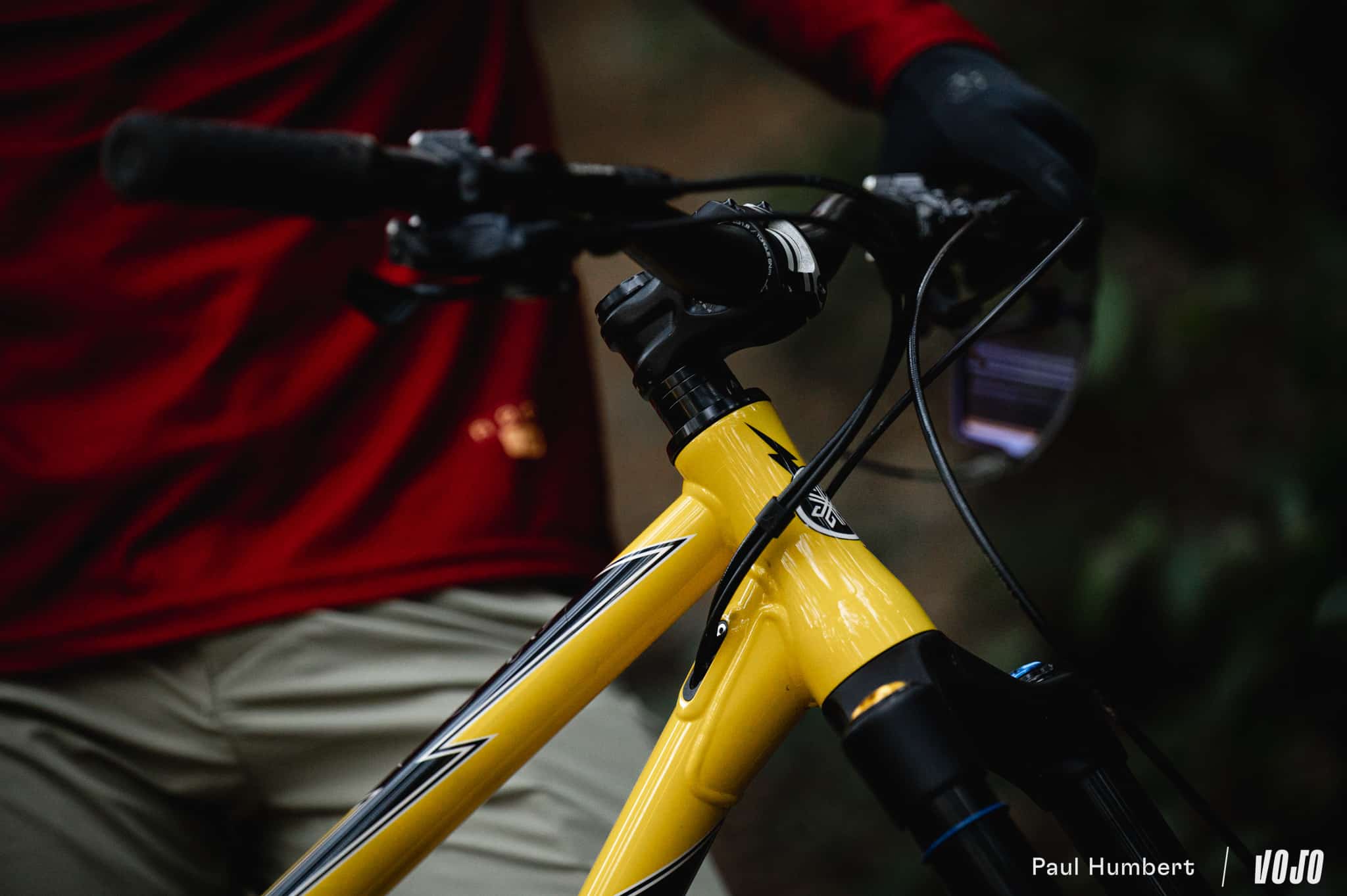 Lorsqu’on passe sur des traces moins lisses, généreusement pourvues en racines ou cailloux, les choses se compliquent. D’une part, on manque de grip au freinage et on sent clairement les distances s’allonger. De l’autre, et c’est peut-être encore plus important, on a l’impression d’un décalage entre l’avant en acier et l’arrière en carbone.