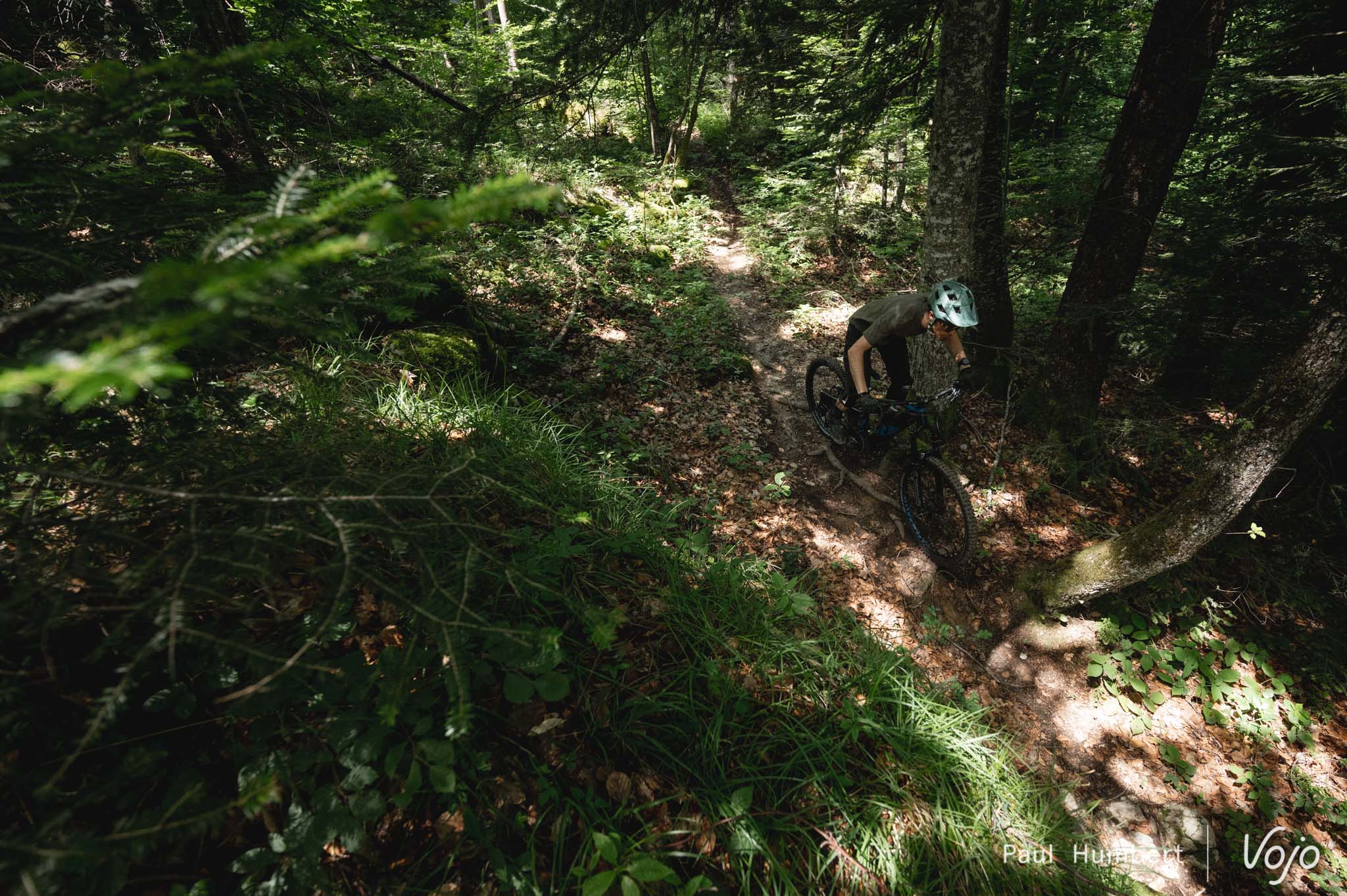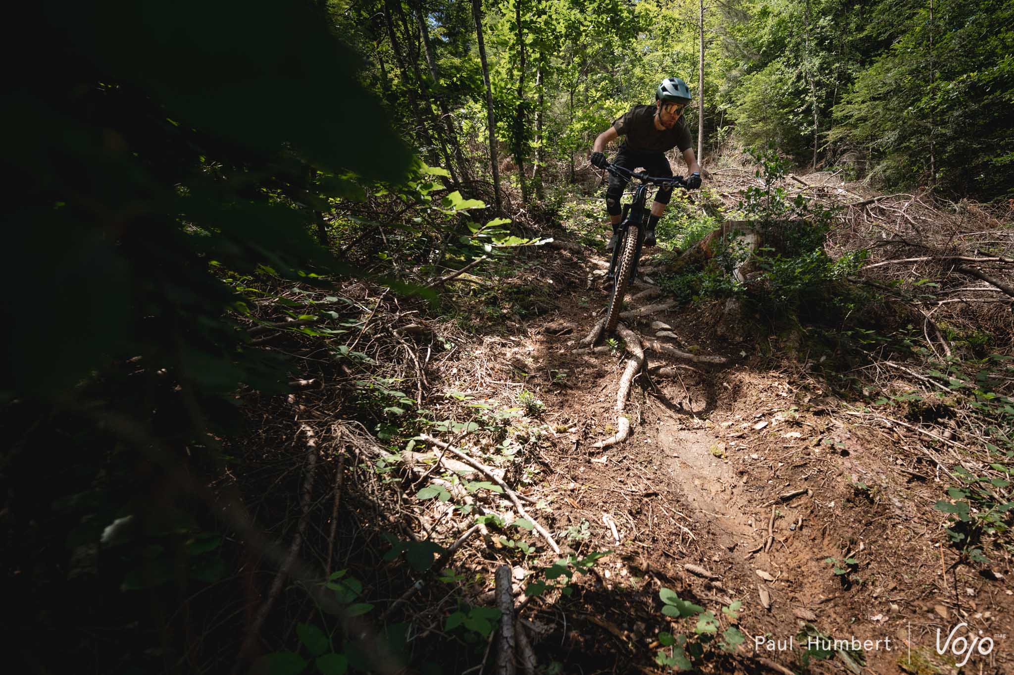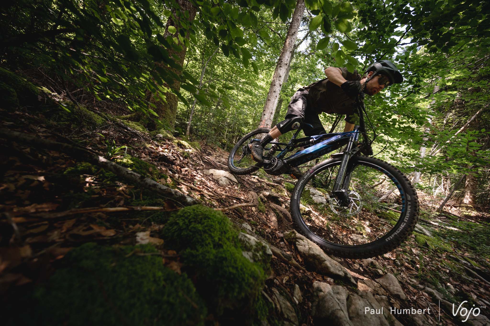 Tout d’abord, il est lourd. La marque l’annonce à 25,9 kg et on peut vous confirmer que la sensation de poids est (très) présente. Sur les sentiers, cela se traduit par un vélo peu réactif dans le technique à basse vitesse et qui peut facilement embarquer son pilote lorsque le rythme est plus élevé. L’inertie est importante et quand on essaie d’attaquer, on a vite l’impression de se battre contre la machine, notamment pour la placer en entrée de courbe ou pour refermer les virages et ne pas sortir à l’extérieur du chemin.