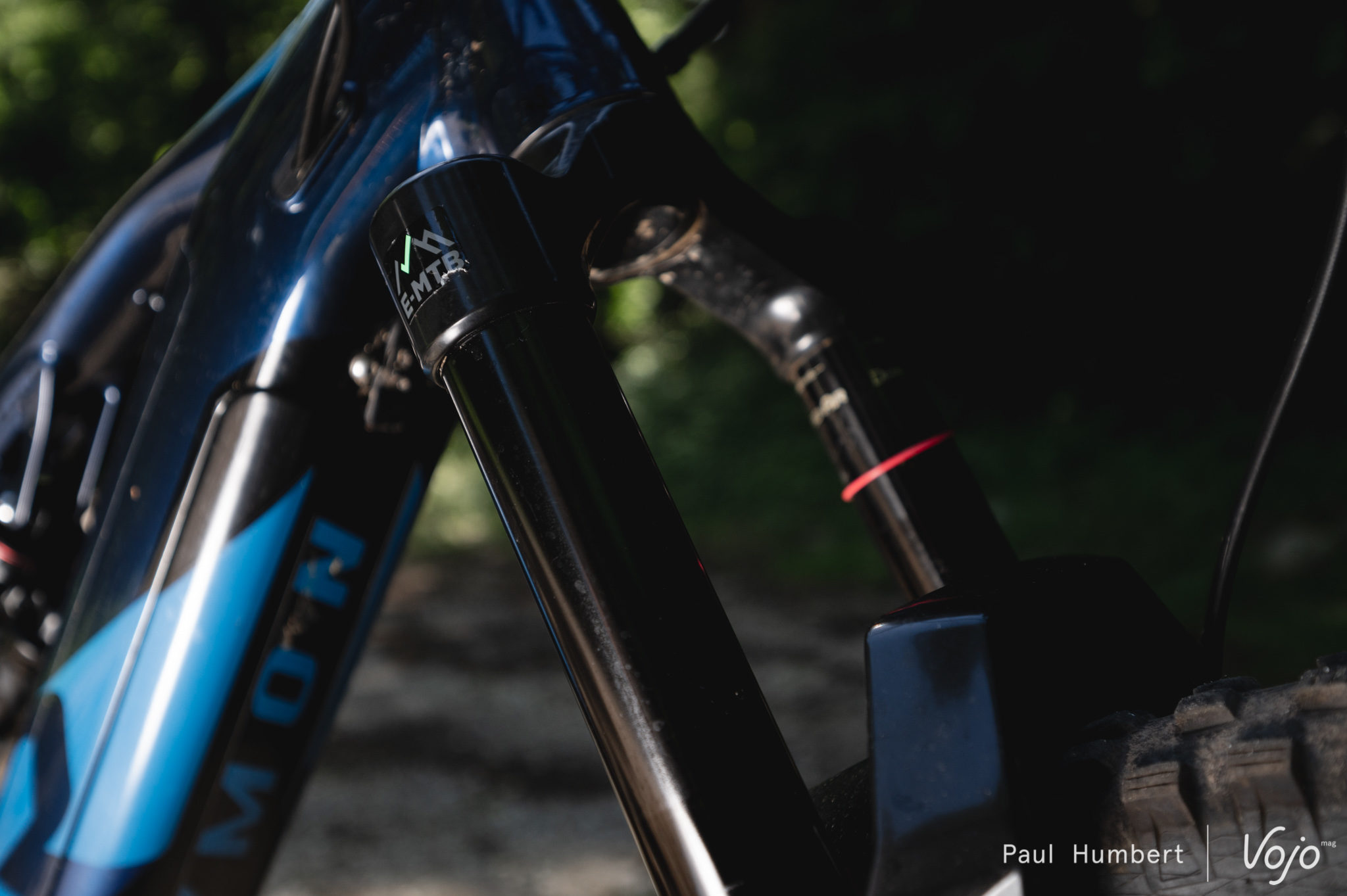 Tout d’abord, il est lourd. La marque l’annonce à 25,9 kg et on peut vous confirmer que la sensation de poids est (très) présente. Sur les sentiers, cela se traduit par un vélo peu réactif dans le technique à basse vitesse et qui peut facilement embarquer son pilote lorsque le rythme est plus élevé. L’inertie est importante et quand on essaie d’attaquer, on a vite l’impression de se battre contre la machine, notamment pour la placer en entrée de courbe ou pour refermer les virages et ne pas sortir à l’extérieur du chemin.