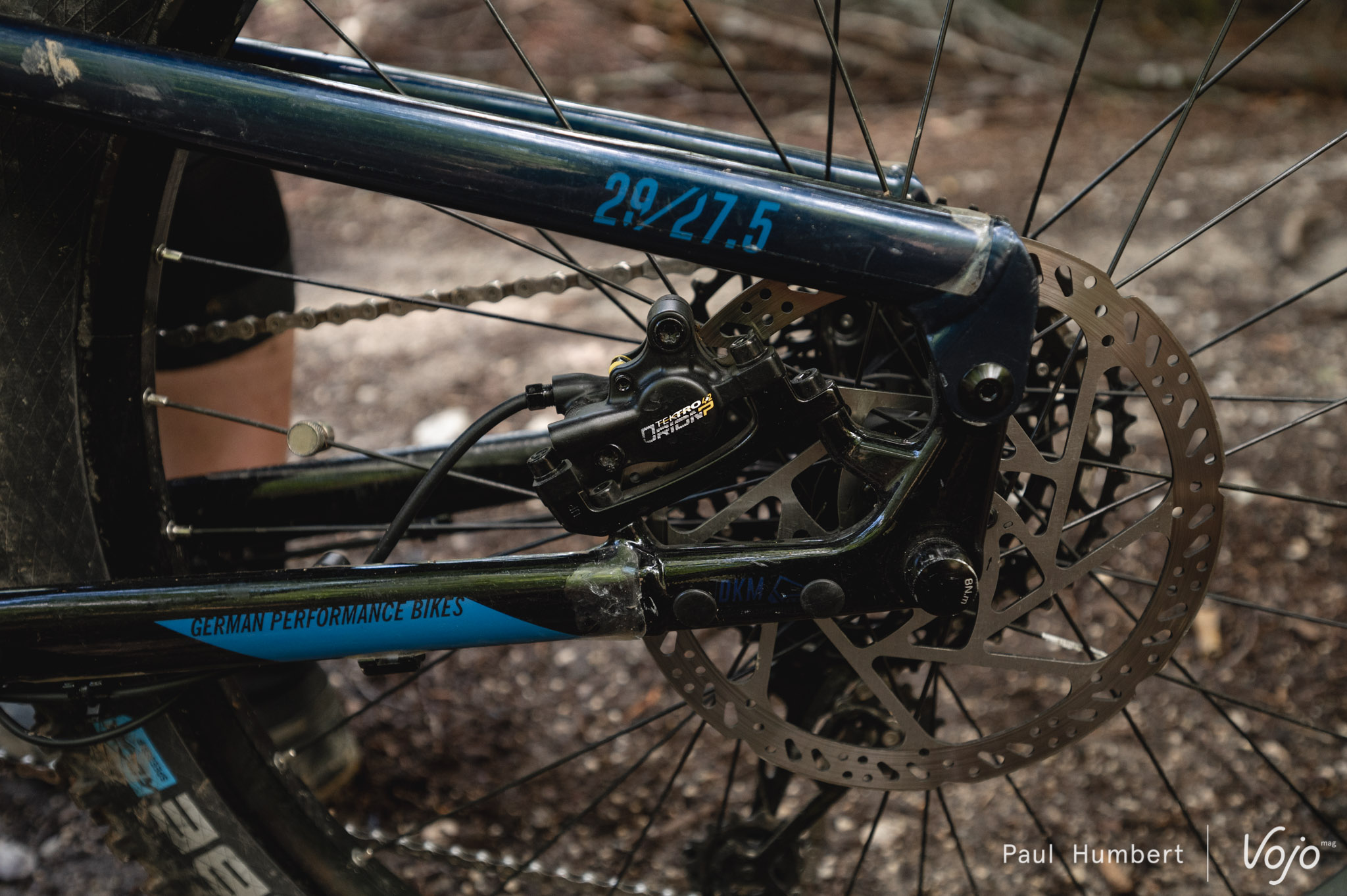 Côté freinage, c’est un peu plus exotique avec des Tektro Orion à 4 pistons et en disques de 200 mm. On en reparlera plus tard mais l’exotique n’a pas toujours du bon…