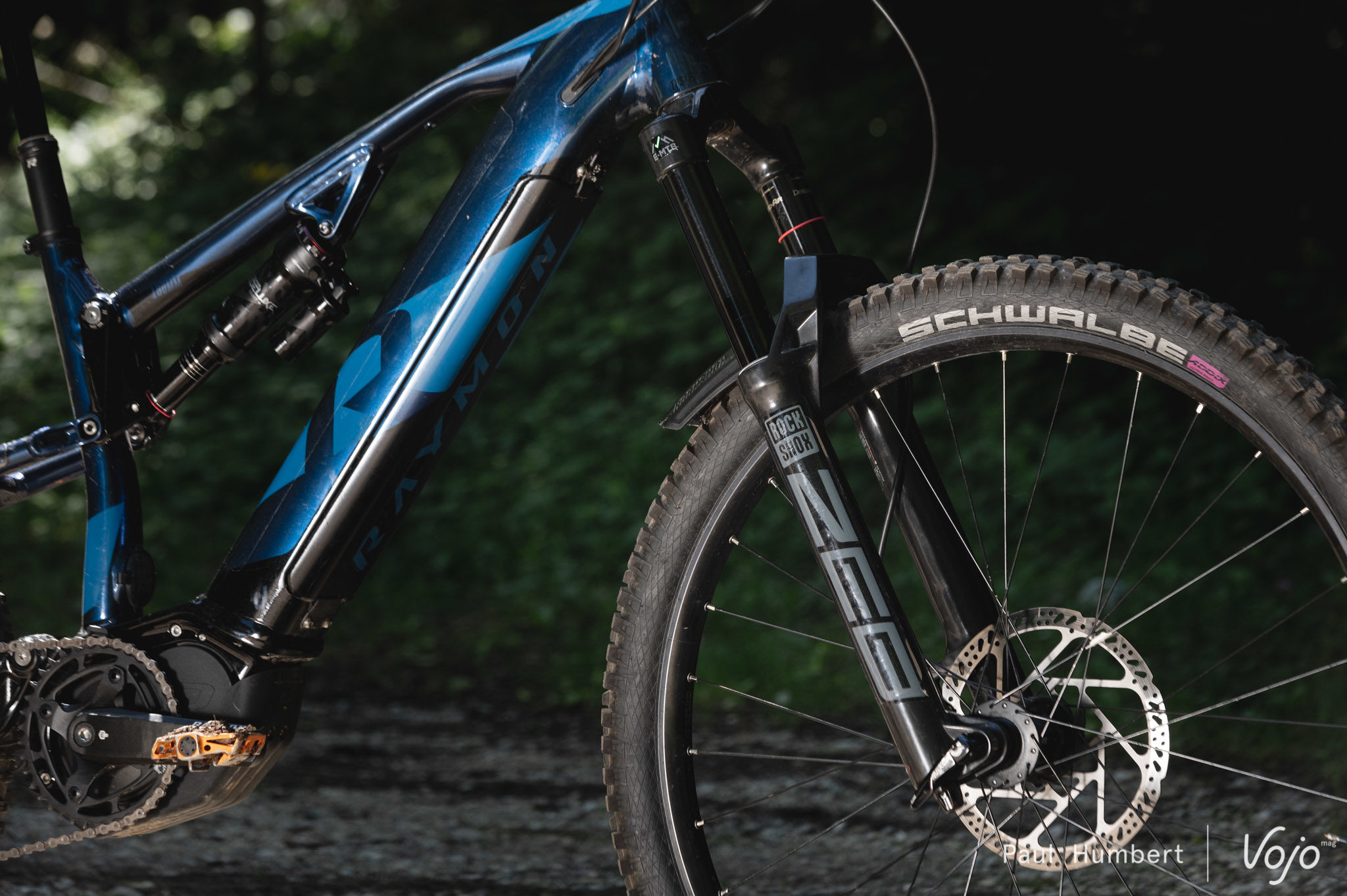 A nouveau, on remarque que R Raymon a mis tout particulièrement l’accent sur les suspensions mais on ne va pas s’en plaindre, bien au contraire. En revanche, les freins paraissent un peu sous-dimensionnés car nous savons d’expérience que les G2, aussi haut de gamme soient-ils dans cette version RSC, sont limités pour une véritable pratique enduro et sont davantage adaptés à du trail, surtout en VAE.