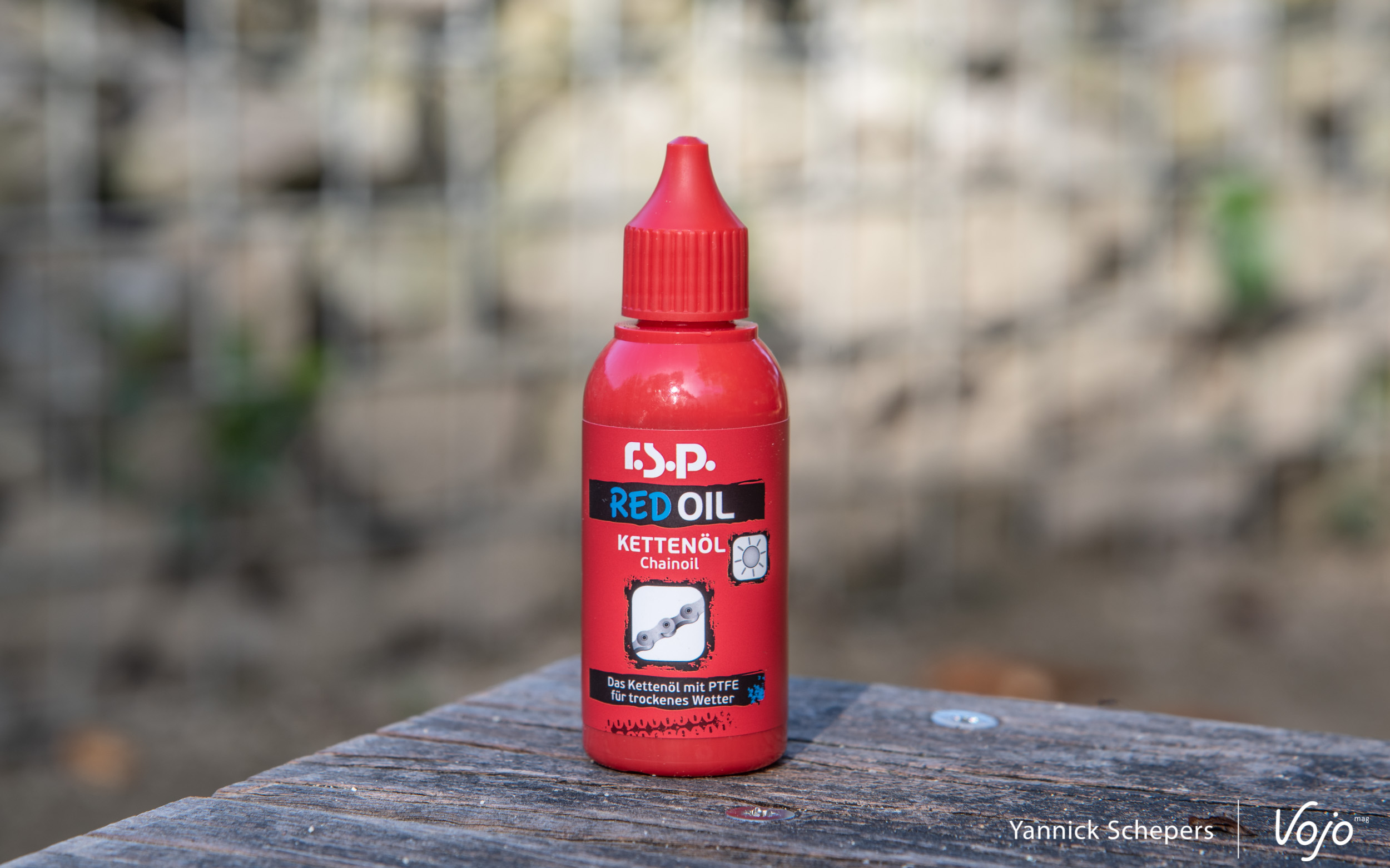 L’huile rouge dure jusqu’à 5-6 heures, avant que l’on entende la chaîne frotter un peu plus et que l’on ait l’impression que tout est un peu raide. On voit aussi très peu de « noir », ce qui semble vraiment être la caractéristique de l’huile de chaîne r.s.p. À la fin des années 80, le fondateur Gerhard Fernbach en avait assez de devoir constamment enlever les marques de chaîne noires de sa tenue blanche et il a ainsi décidé de développer son propre lubrifiant.
