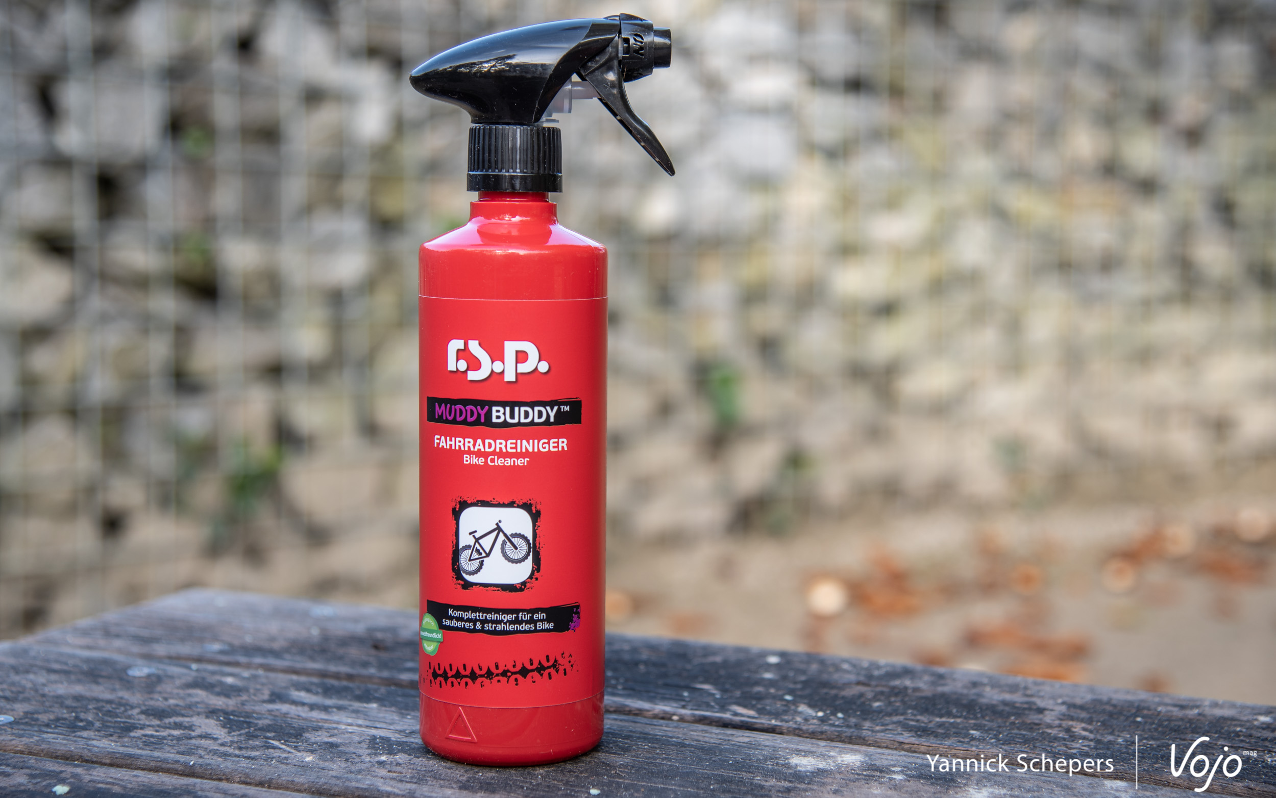 Après la sortie, il faut nettoyer son vélo et à ce titre, un produit dédié est fort utile pour tout mécanicien amateur à domicile. Chez r.s.p., le savon répond au nom de « Muddy Buddy » et comme tout produit de nettoyage, il doit répondre à un certain nombre de critères : efficacité, respect de l’environnement, économie, odeur, impact sur les muqueuses et autres tissus fragiles du corps humain, notamment les yeux et le nez… L’idéal est d’obtenir un nettoyage en profondeur avec le moins de produit possible, qui soit en même temps extrêmement respectueux de l’environnement et qui dégage une odeur tolérable, sans irriter les yeux ou le nez. La tête de pulvérisation joue également un rôle dans la note ; elle est parfois difficile à utiliser, tombe rapidement en panne ou gaspille beaucoup de produit.