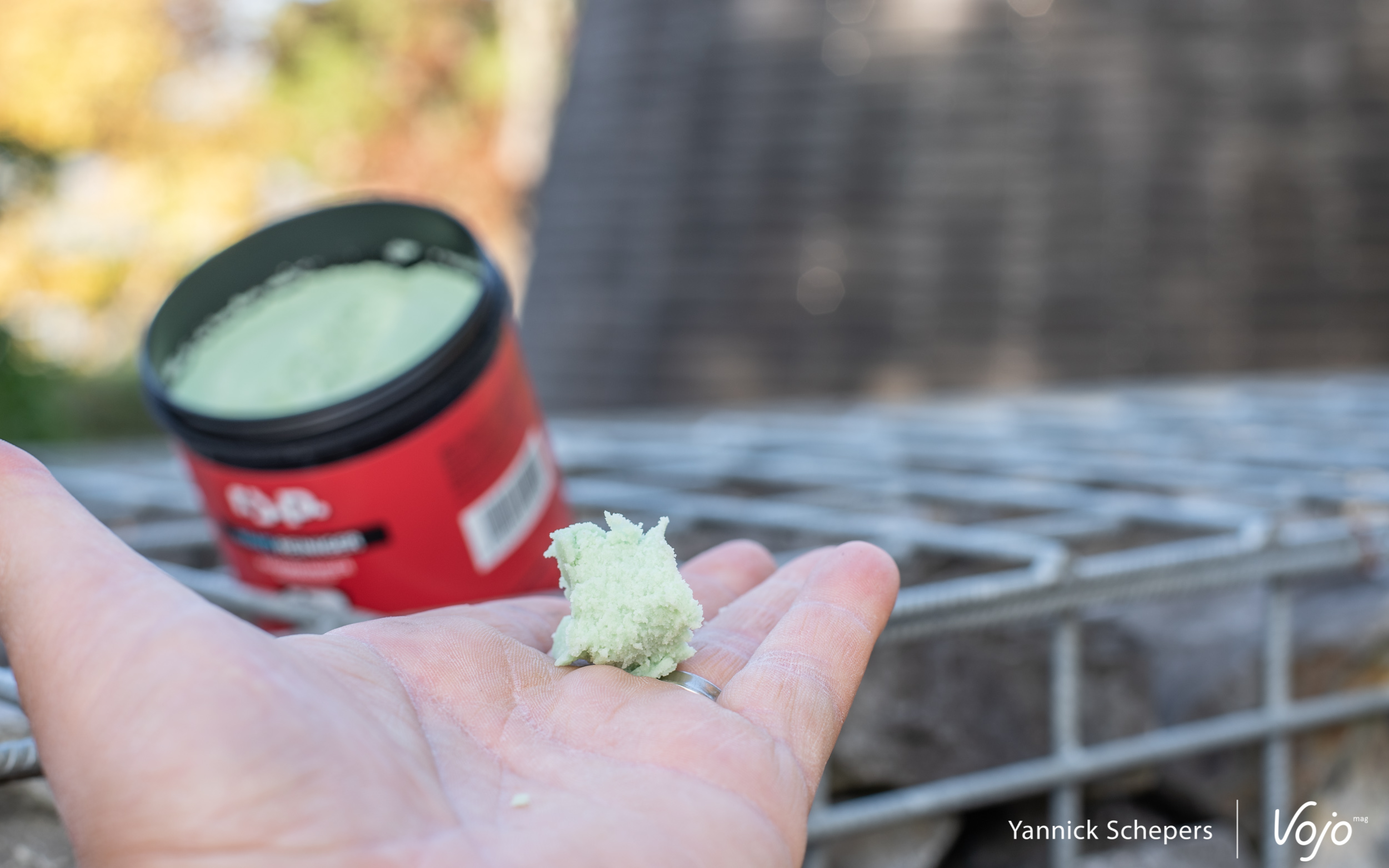 Rien n’est plus frustrant qu’un craquement sur le vélo. Localiser ce bruit est une tâche de longue haleine en soi, mais une fois qu’on en a trouvé la cause, il reste encore à la résoudre. Bien souvent, une pâte de montage peut être la solution à ce genre de problème, plus encore que l’huile et la graisse qui se répandent plus facilement et attirent davantage les saletés. La Creak Freak est une pâte de montage qui, grâce à un certain nombre de propriétés, doit offrir une solution aux bruits indésirables encore plus efficace qu’une pâte ordinaire. Nous avons testé le grand pot d’un demi-kilo, fourni avec une brosse bien pratique. Proposé à 49,50 euros, il devrait durer les dix prochaines années. Il existe également un plus petit tube de 50g qui coûte 11,50 euros, sans pinceau toutefois. Et ce pinceau est vraiment utile, car cette pâte bleu clair est beaucoup plus sèche, moins grasse et plus collante que les autres. L’appliquer avec les mains, c’est prendre le risque d’en laisser très rapidement des traces un peu partout sur le vélo.