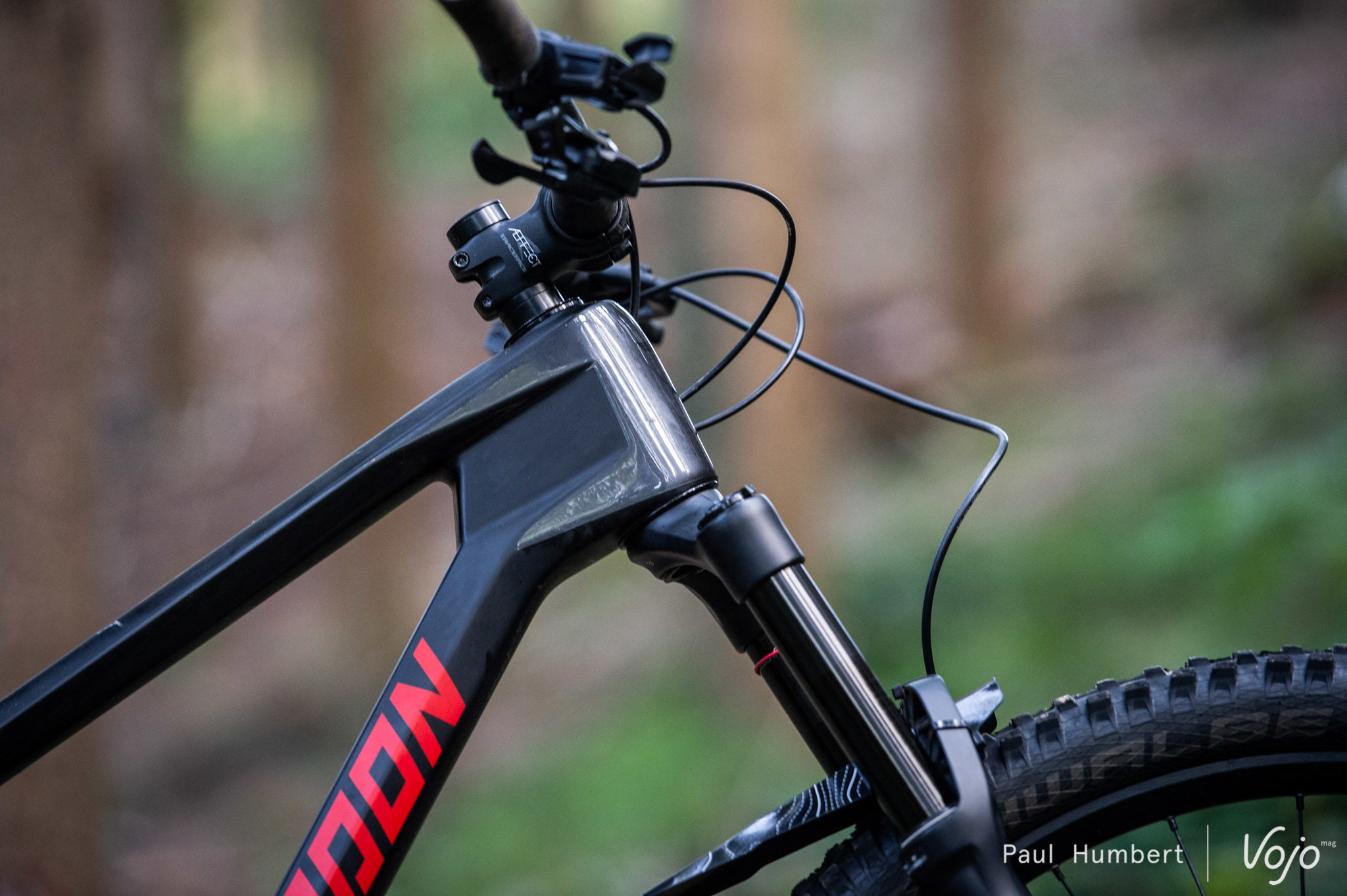 Les lignes acérées rappellent le Jab d’enduro et sont, de notre avis, plutôt réussies. Principalement noir, le cadre dispose de plusieurs touches de rouge bien placées qui viennent donner un caractère agressif au vélo.