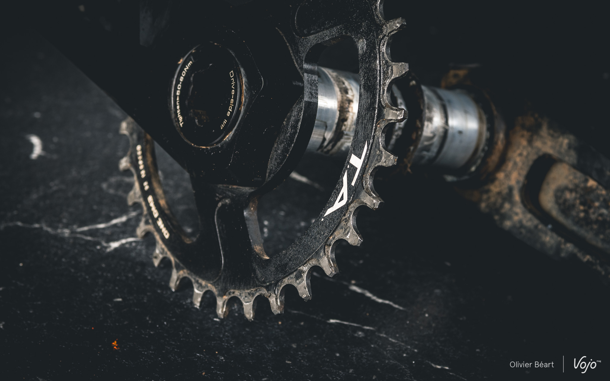 Pour ce qui est des plateaux, là aussi , l’offre est pléthorique, puisqu’on peut choisir dans tout le catalogue Specialites TA, en forme ronde classique ou Ovalution, mais pas seulement. En effet, le pédalier Arrow adopte une interface de montage de type Sram, ce qui le rend compatible avec les plateaux de la marque américaine, ainsi qu’avec les innombrables autres marques de plateaux adaptables qui produisent des modèles de ce type. Bref, au final, on se retrouve avec ce qui est sans doute l’un des pédaliers les plus modulables du marché.