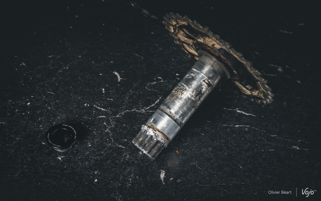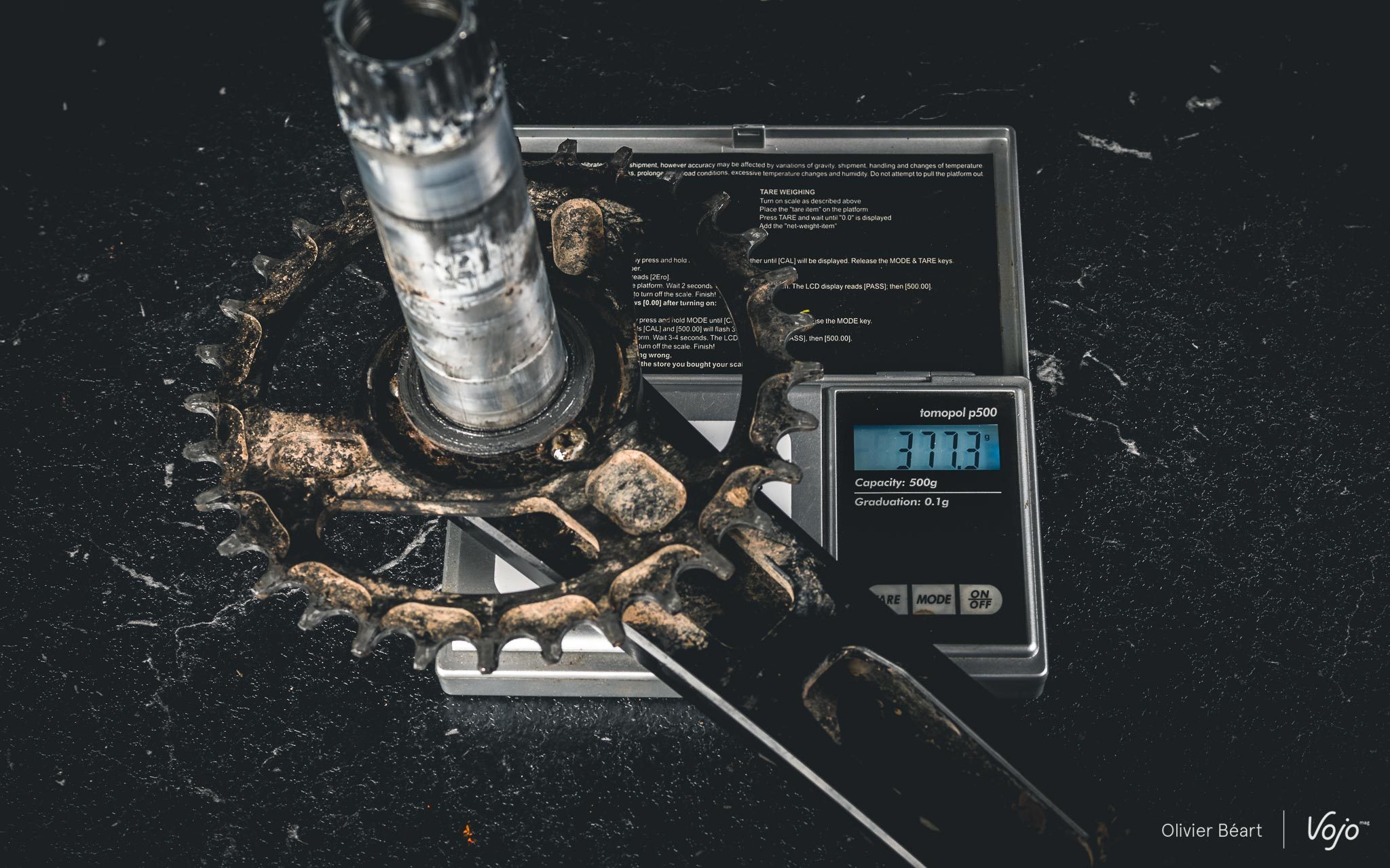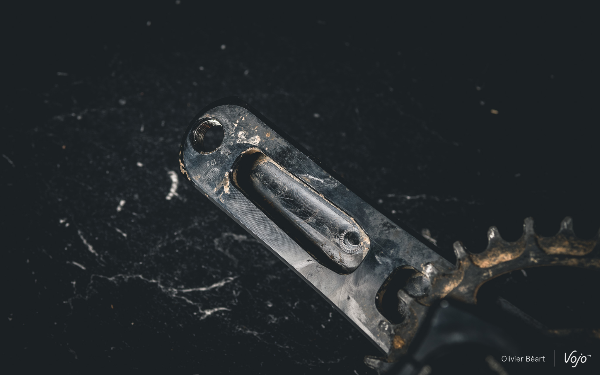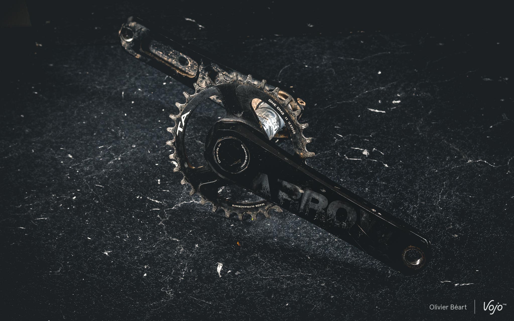Par contre, après ces petits ennuis au début, le reste du test s’est parfaitement déroulé. Au terme de toute une saison d’essai, le pédalier Specialites TA Arrow est toujours en excellent état, tant visuel que fonctionnel. Le boîtier de pédalier est toujours bien fluide, les manivelles très peu marquées et le plateau ne montre aucun signe d’usure anormale. Il a aussi toujours bien maintenu la chaîne et nous n’avons connu aucun déraillement. Après 6 mois environ, quelques craquements sont apparus, mais un démontage, un nettoyage complet et un remontage dans les règles avec graisse et pâte de montage aux endroits sensibles ont permis de faire disparaître ces bruits parasites.