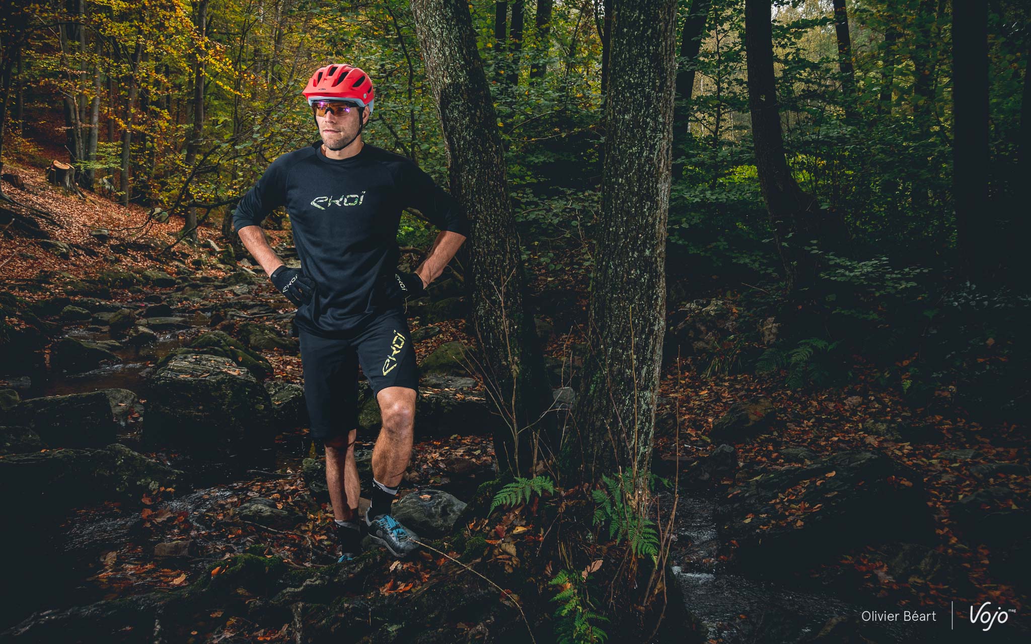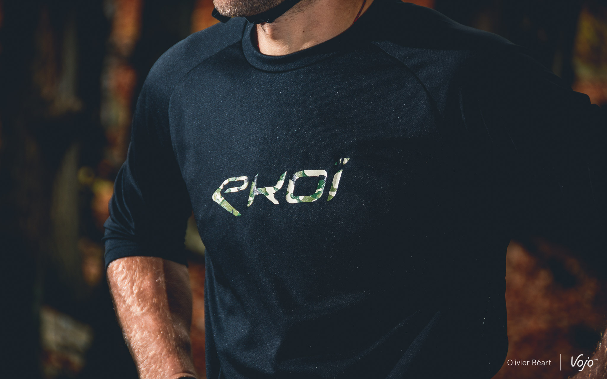 La gamme Ekoi MTB est assez réduite, puisqu’elle ne comporte que 20 références, contre plusieurs centaines pour la route et qui peuvent aussi convenir au VTT. Outre des casques, des chaussures et un garde-boue, on retrouve surtout une panoplie typée all-mountain/enduro. Elle se montre très passe partout tant au niveau des pratiques que de la saisonnalité car rien n’empêche de porter des couches plus chaudes en dessous en automne et en hiver et il n’y a guère qu’en cas de pluie qu’elle ne sera pas vraiment adaptée.