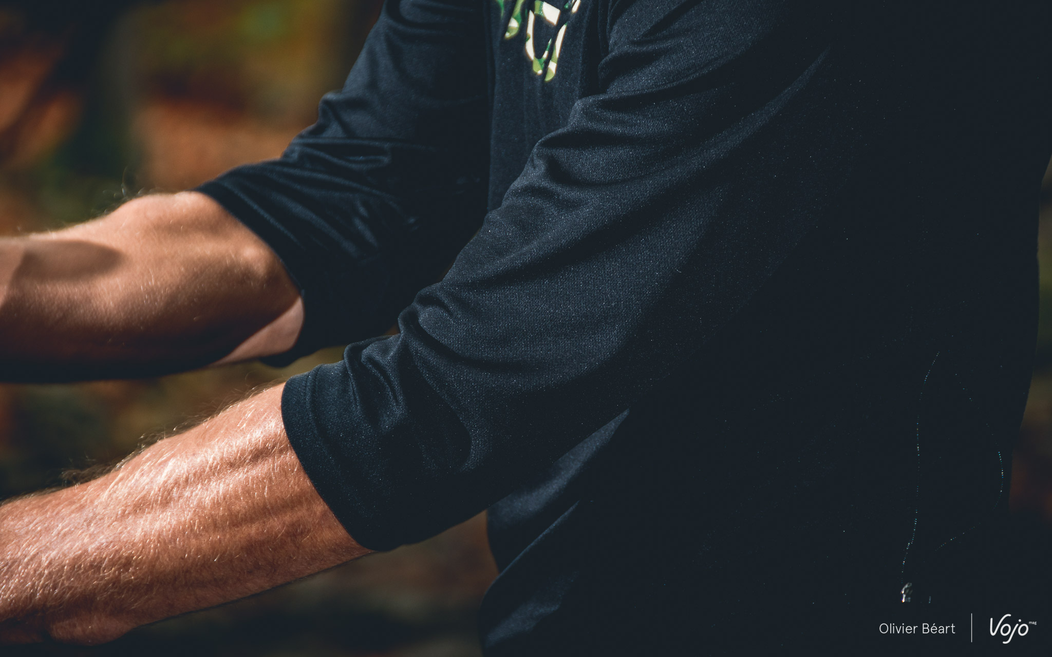 Les manches sont en 3/4, faciles à retrousser pour en faire des (presque) courtes, mais c’est agréable pour couvrir des coudières ou protéger un peu mieux les bras des branches et autres ronces hostiles. A ce sujet, nous avons apprécié la solidité de l’ensemble, qui a résisté sans accroc à pas mal de végétaux agressifs. Nous n’avons par contre pas testé les morsures de dinosaure ni les ouragans.