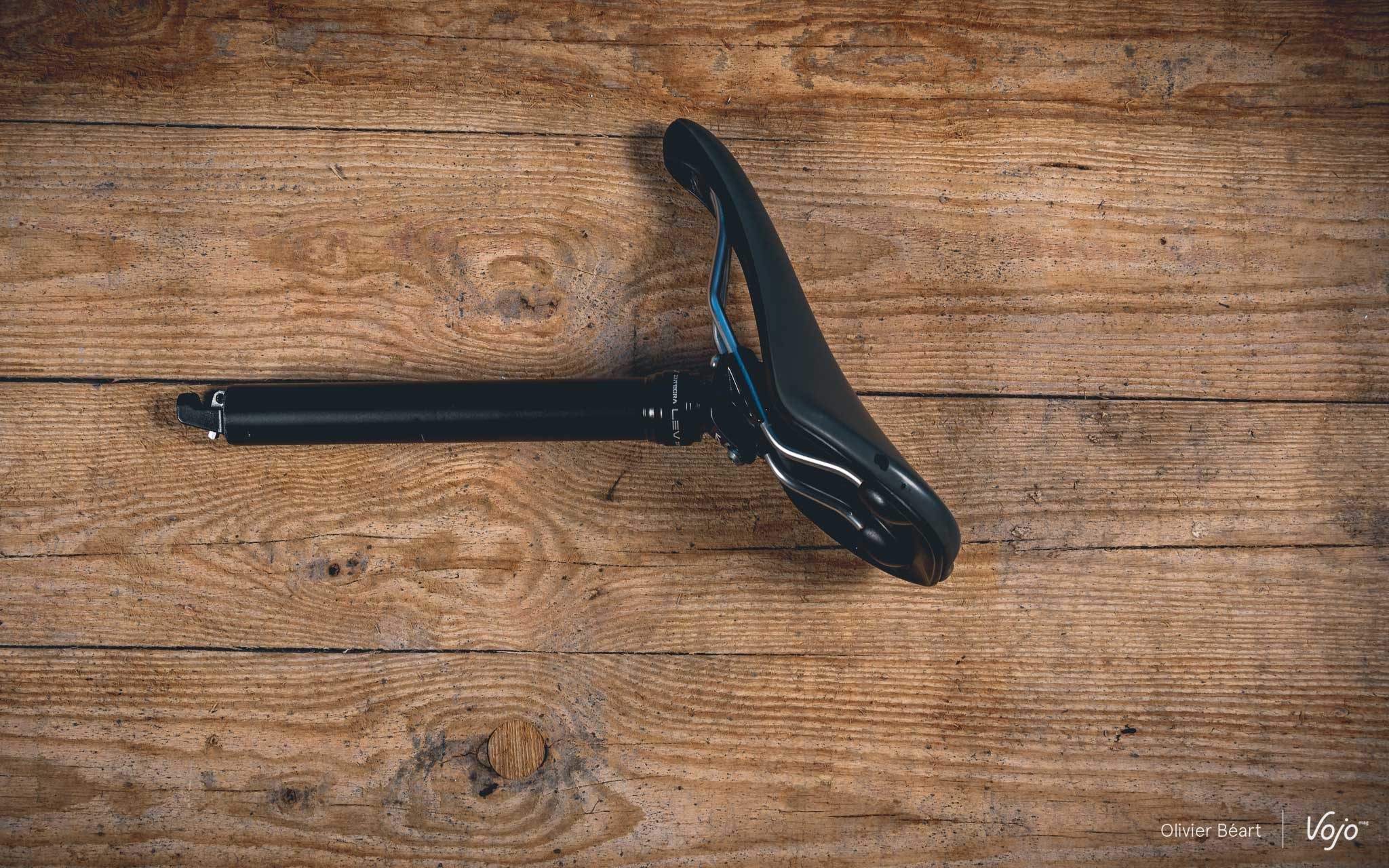 Au niveau de la tige de selle elle-même, on apprécie toujours sa souplesse de fonctionnement, l’onctuosité avec laquelle elle monte et elle descend puis, surtout, la constance et le réel niveau de fiabilité auxquels elle semble enfin arrivée aujourd’hui. En effet, tant sur notre modèle de test que sur les autres versions montées sur des vélos de test (dont un exemplaire conservé et utilisé intensivement pendant 3 mois), nous n’avons noté aucune prise de jeu au-delà du léger jeu fonctionnel présent dès le départ, aucune fuite et aucune modification du comportement sur la durée.