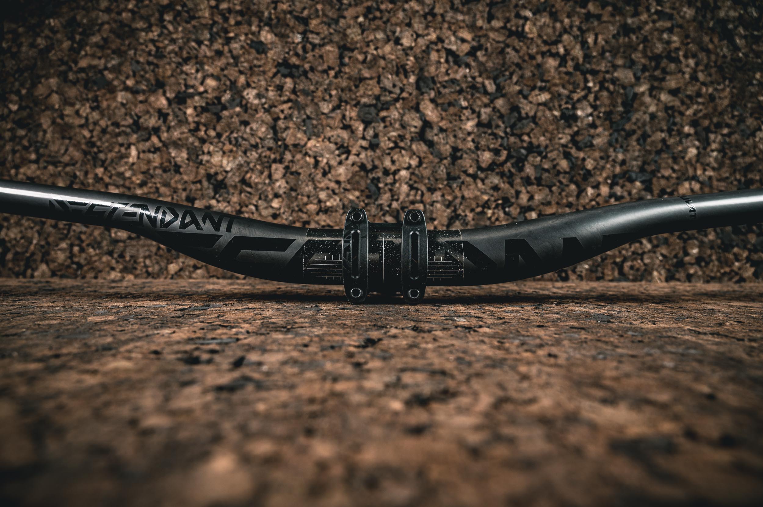 Mais avant d’aller rouler, faisons un rapide tour du propriétaire. Commençons par le cintre, qui est en carbone. Le choix de ce matériau est inévitable si on veut pouvoir offrir un minimum de filtration des vibrations malgré le diamètre imposant. C’est d’ailleurs sur le choix des fibres et leur disposition que Truvativ a joué pour permettre à ce cintre Descendant de se déformer légèrement. Ce qui aurait été impossible en aluminium, qui reste un matériau intéressant quand on cherche à garder un tarif plus accessible, mais dont les possibilités au niveau mécanique sont moins étendues que pour le carbone qui permet de faire beaucoup plus de choses.