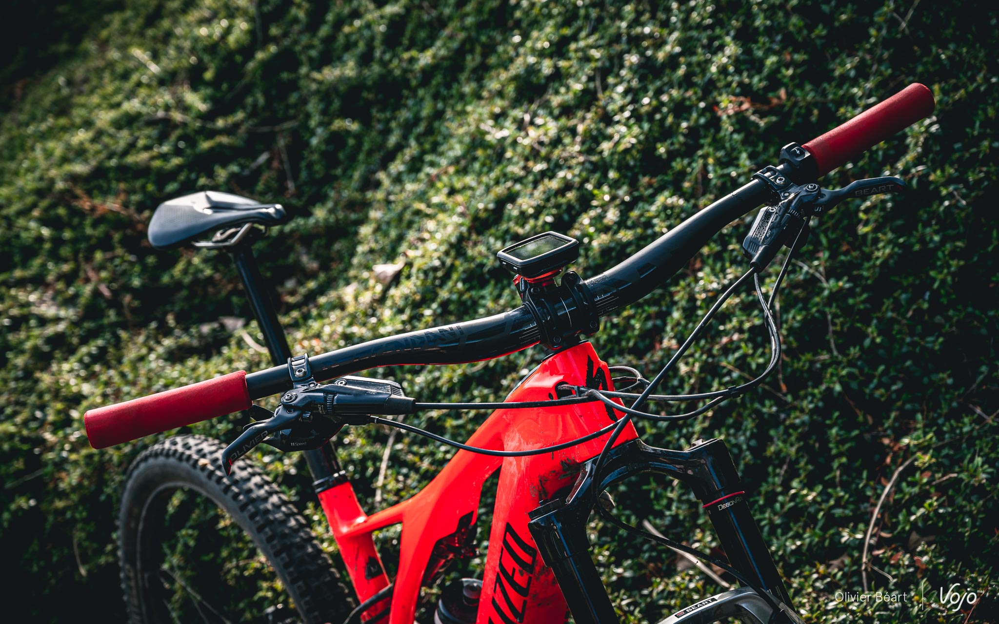 Lors de longues descentes et de sorties de plus de 2h, nous n’avons ressenti aucun engourdissement des doigts ou de fatigue des poignets, alors que c’est presque une constante avec les autres postes de pilotage en 35mm que nous avons eu l’occasion de rouler (et nous parlons à grips égaux, puisque nous prenons quasi systématiquement soin de les changer sur nos vélos de test). Quant à la potence, elle fait bien son job en se montrant un prolongement cohérent du cintre.