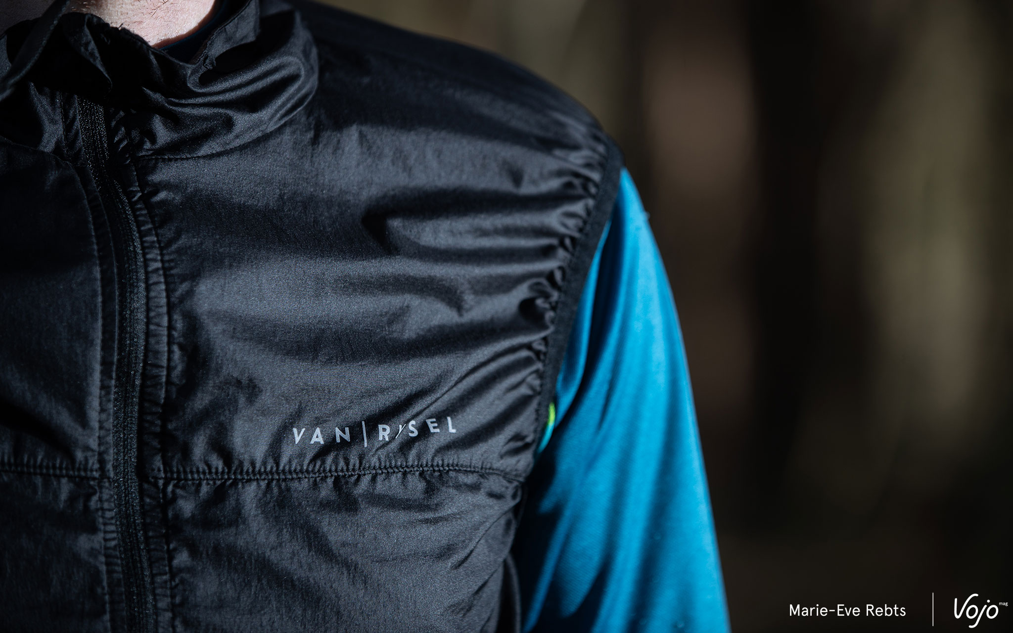 Depuis début 2019, Van Rysel (littéralement « de Lille » en néerlandais, ce qui s’explique car le bureau R&D de la marque est situé dans cette ville du Nord) est le nom des produits vélo du géant Decathlon destinés aux cyclosportifs, que ce soient les vélos eux-mêmes, les équipements ou le textile, à l’instar de Rockrider pour le VTT ou Triban pour le cyclotourisme. Mais comme on le verra un peu plus loin, l’appellation ne fait pas tout et ce coupe-vent sans manches ne se limite pas à un usage route puisqu’il est parfaitement adapté au tout-terrain.