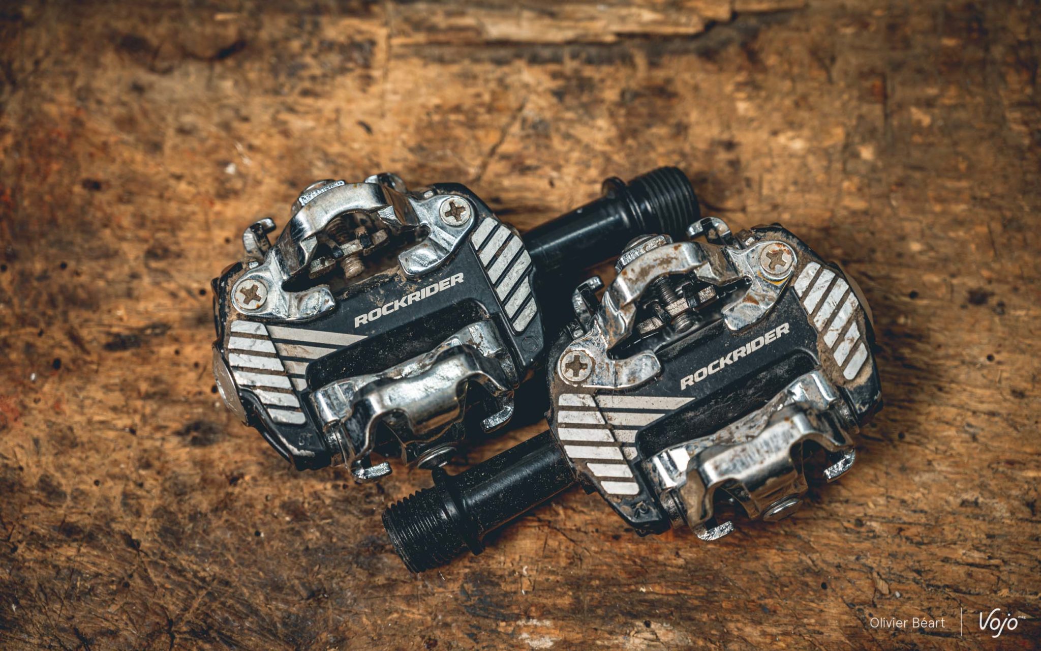 Rockrider, la marque VTT de Decathlon, ne propose pas que des vélos. On trouve également ce nom sur une vaste gamme d’accessoires… dont des pédales SPD. Pour un prix très serré de 40€, on dispose d’une construction entièrement métallique et de doubles roulements comme sur des modèles haut de gamme. Est-ce une alternative sérieuse à Shimano ? Verdict avec notre test :