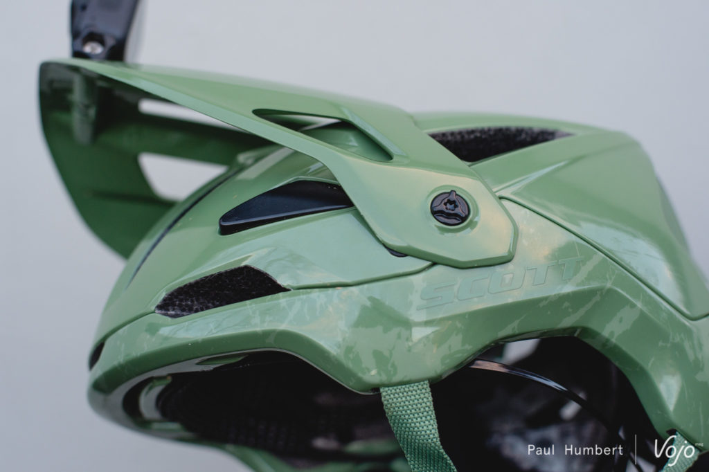 Ici, on a droit à une belle et longue visière (réglable sur 2 positions pour ranger facilement un masque en dessous) qui prolonge parfaitement la silhouette générale. Malgré les lignes moins tendues et les aérations (au nombre de 20) plus courtes que sur d’autres modèles de la marque, la « patte » Scott reste bien reconnaissable, notamment en dessous de la visière ou au niveau de l’arrière du crâne. La finition brillante est de belle facture et est tout à fait digne d’un casque haut de gamme. On retrouve 6 différents coloris à un tarif, haut de gamme, de 189,90€.