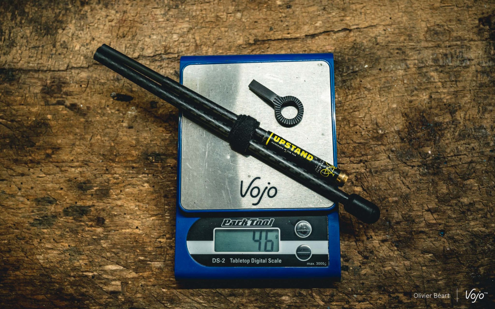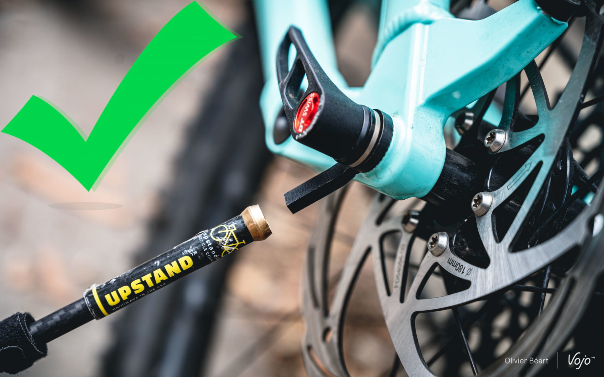 Vous ne trouvez pas cela bizarre parfois de poser négligemment votre beau VTT à même le sol ? Ou juste contre un mur au risque qu’il glisse et soit abîmé ? C’est la réflexion qui a mené à la création du système UpStand, un petit pied en carbone ultra léger et compact qui vous permettra de faire tenir votre vélo de manière sûre. Efficace ? Vojo l’a testé.