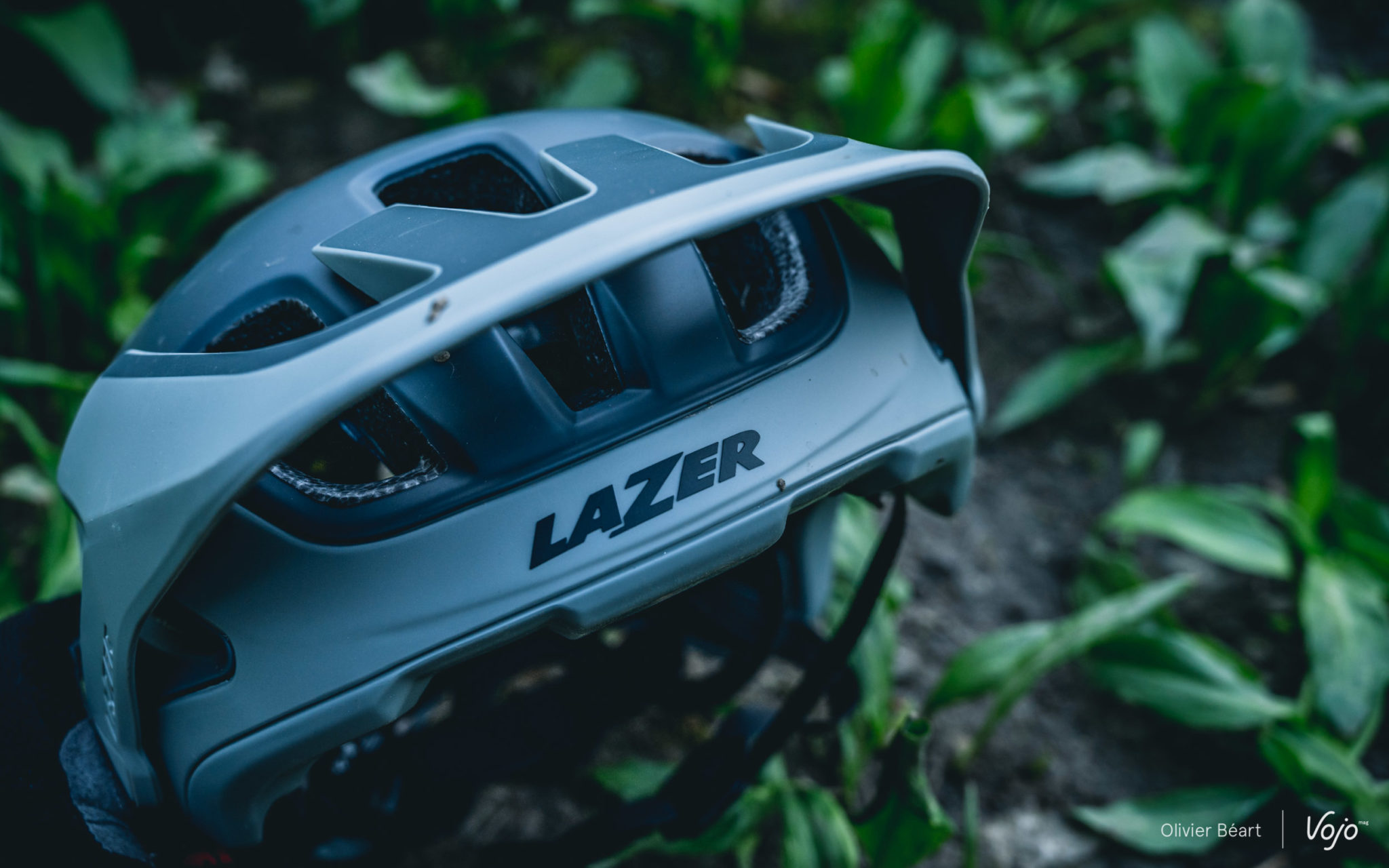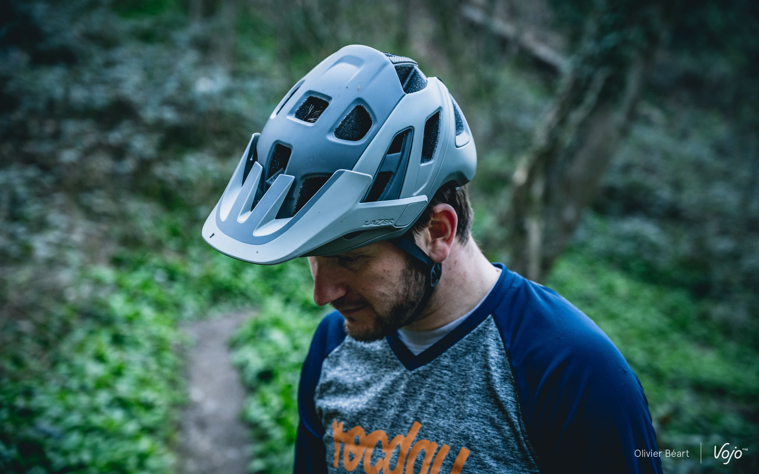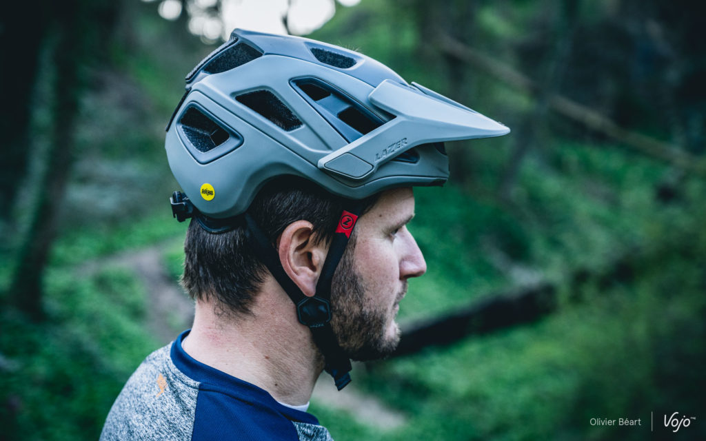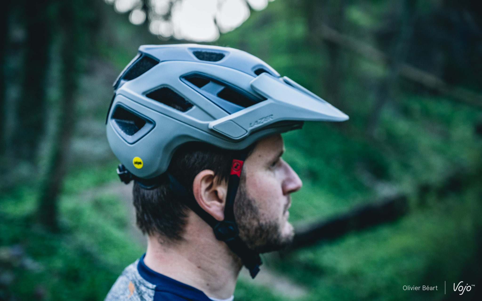 Enfin, on termine le tour du propriétaire par la jugulaire, qui se ferme par une boucle magnétique, un choix de plus en plus courant sur les casques de VTT. Le modèle choisi par Lazer est aussi facile à ouvrir qu’à fermer et même s’il est un poil plus volumineux qu’un « clip » classique, il n’est jamais gênant. Il y a aussi moins de risque de se pincer un petit morceau de peau en le manipulant. Quant au réglage des sangles au niveau des oreilles, il est aussi très pratique et on peut positionner la boucle très près de ses lobes sans ressentir de sensation désagréable.